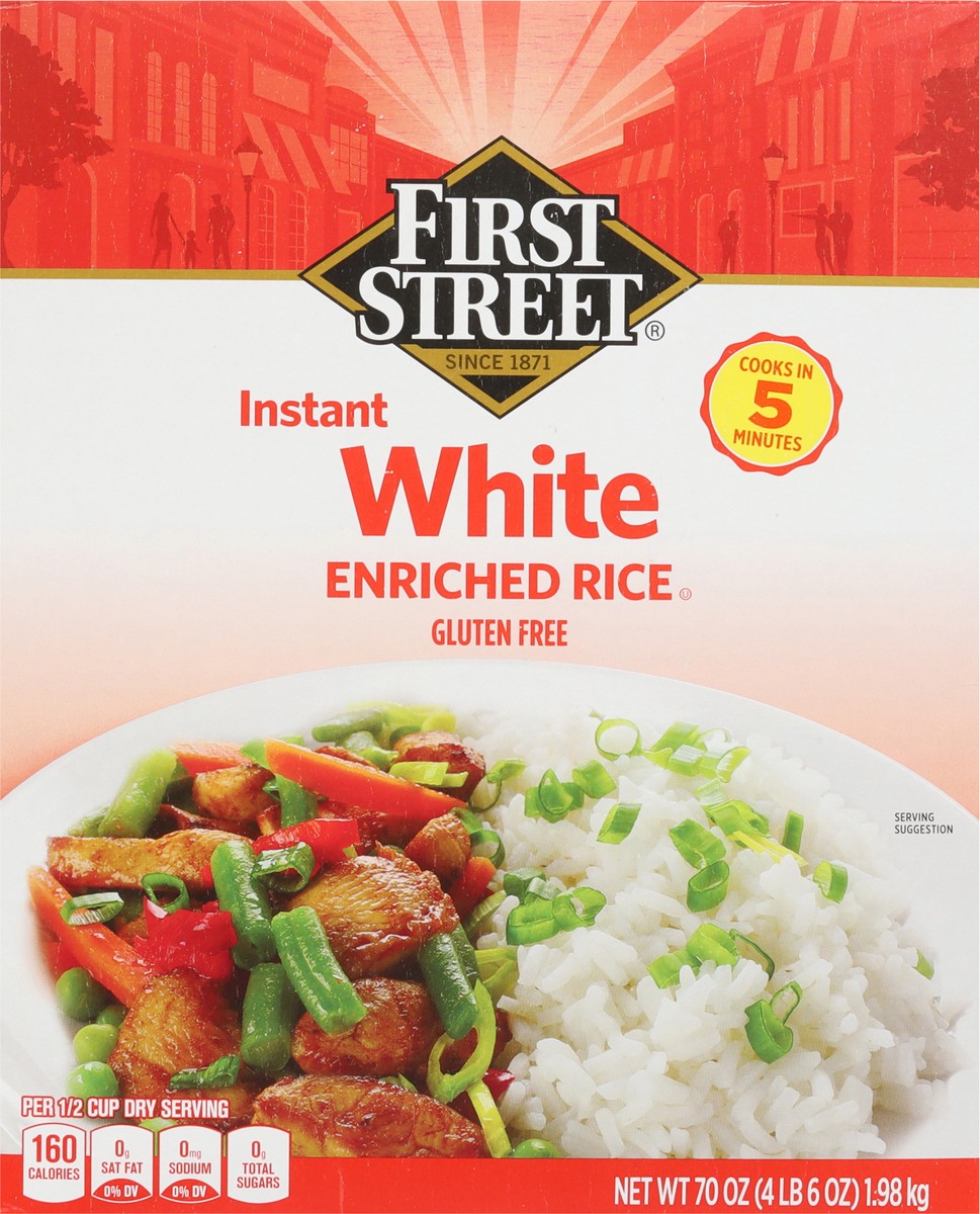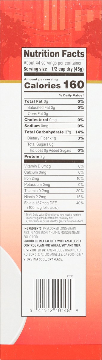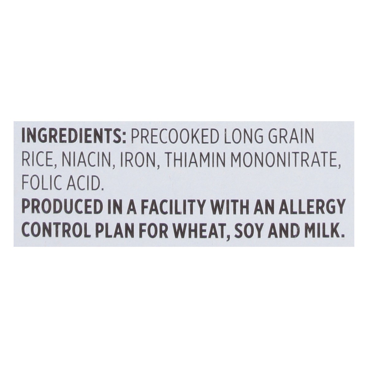 Precooked Long Grain Rice, Niacin, Iron, Thiamin Mononitrate, Folic Acid.