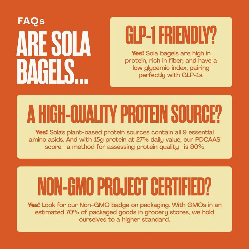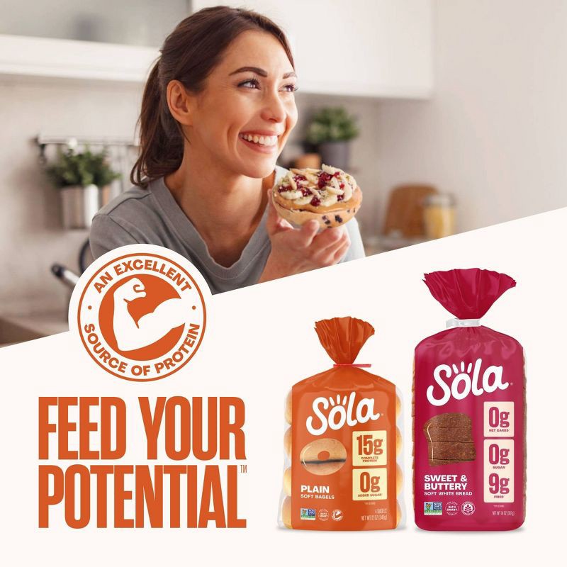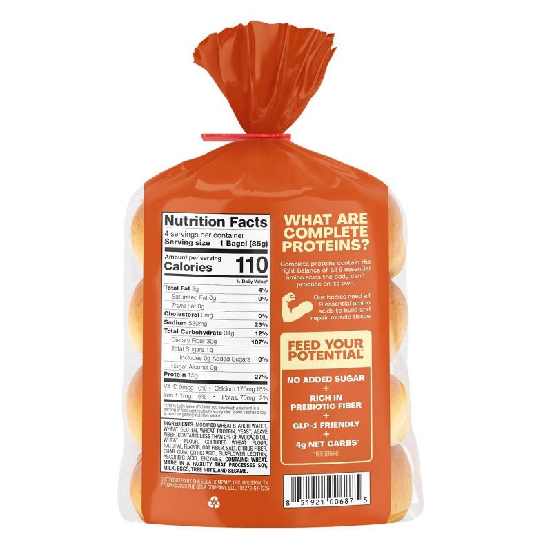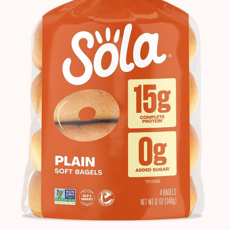 Keep it simple with Sola Plain Bagels. Lightly sweet with a warm, toasty finish, these perfectly balanced bagels deliver classic flavor with a better-for-you twist. Each one is packed with 15g of comp…