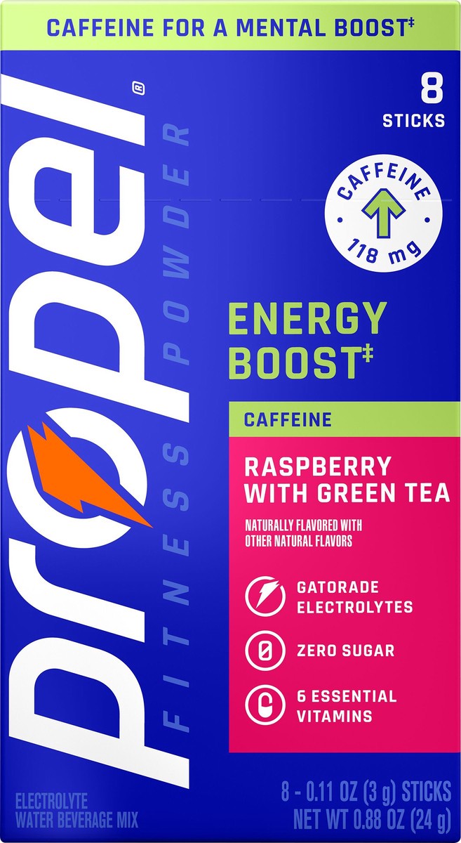 Boost your focus and hydrate your body with Propel Fitness Powder Energy Boost. These stick packs contain 118mg of caffeine, Gatorade electrolytes and 6 essential vitamins — and zero sugar! Simply mix…