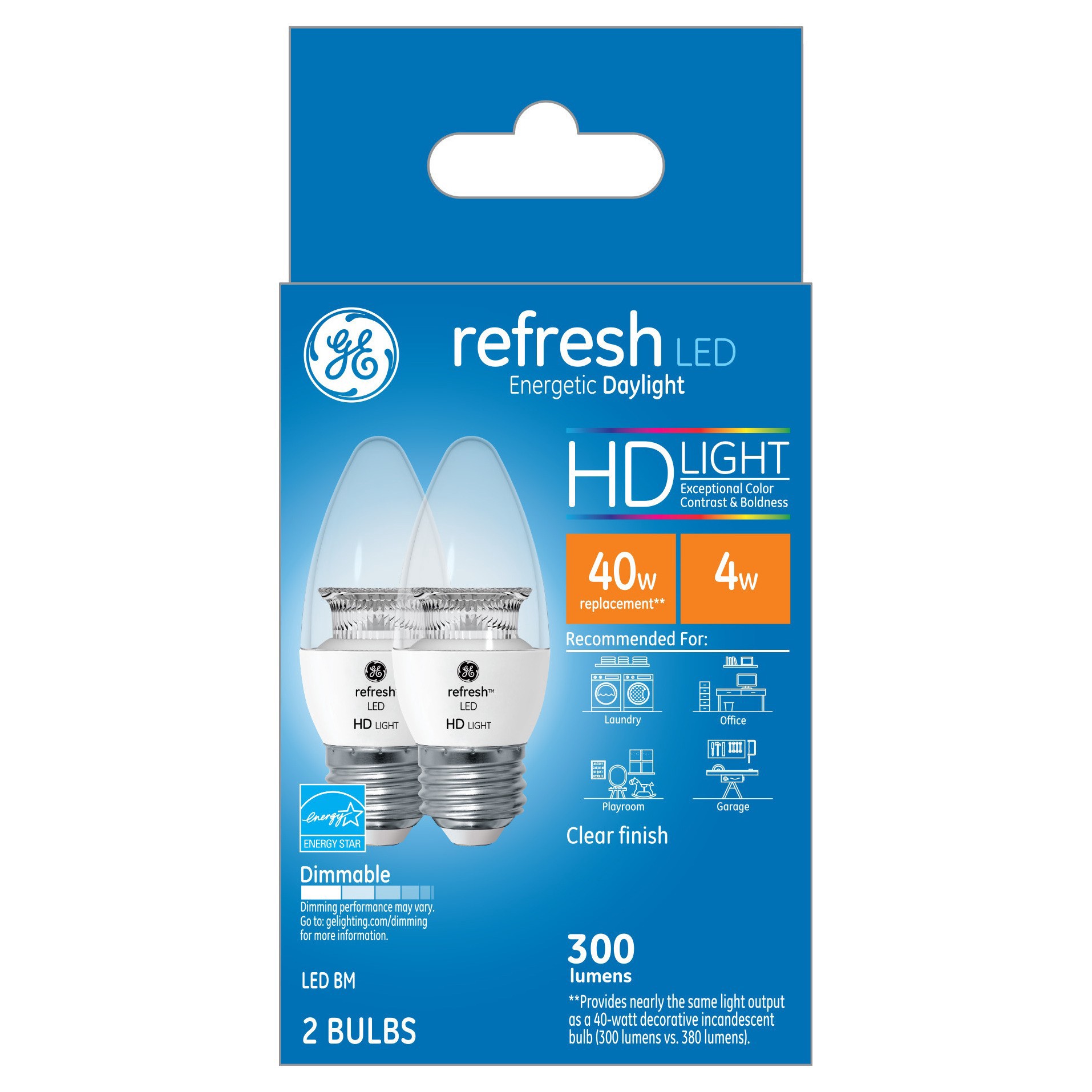 GEs HD refresh Energetic Daylight LED 40-Watt Replacement Decorative Blunt Tip bulb offers outstanding energy efficiency, long-lasting performance and exceptional color contract & boldness, all in oneā¦