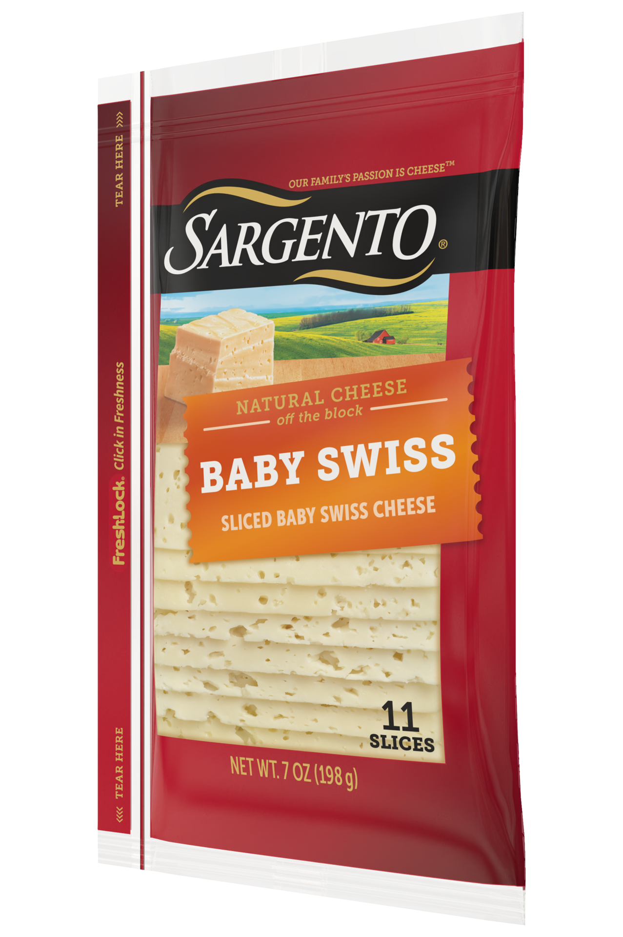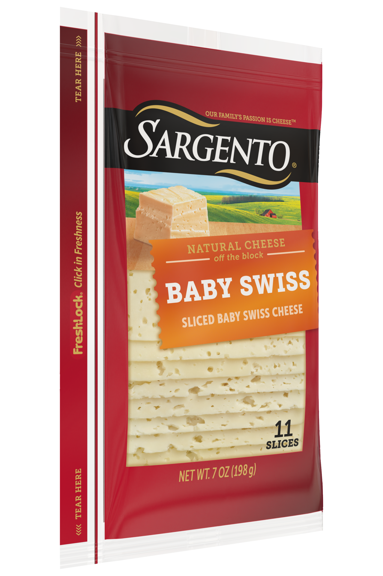 Sargento Sliced Baby Swiss Natural Cheese adds a deliciously mild, nutty-buttery flavor to cold-cut sandwiches and patty melts and makes a mouthwatering mushroom-Swiss burger. And it''s a definite mus…