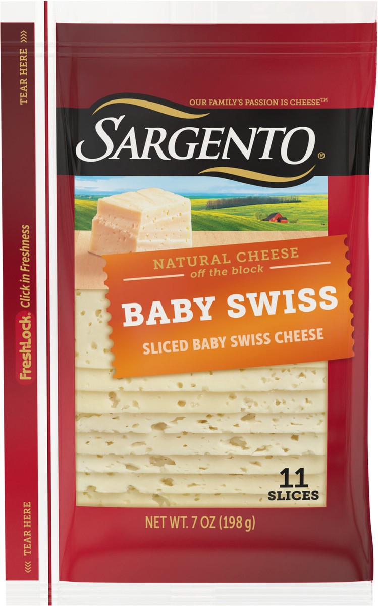 Sargento Sliced Baby Swiss Natural Cheese adds a deliciously mild, nutty-buttery flavor to cold-cut sandwiches and patty melts and makes a mouthwatering mushroom-Swiss burger. And it''s a definite mus…