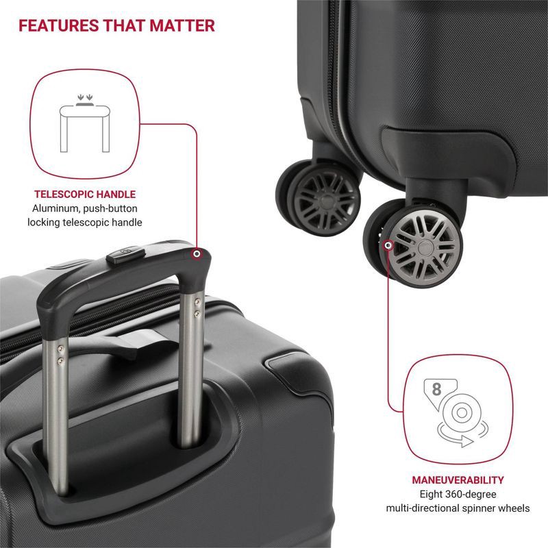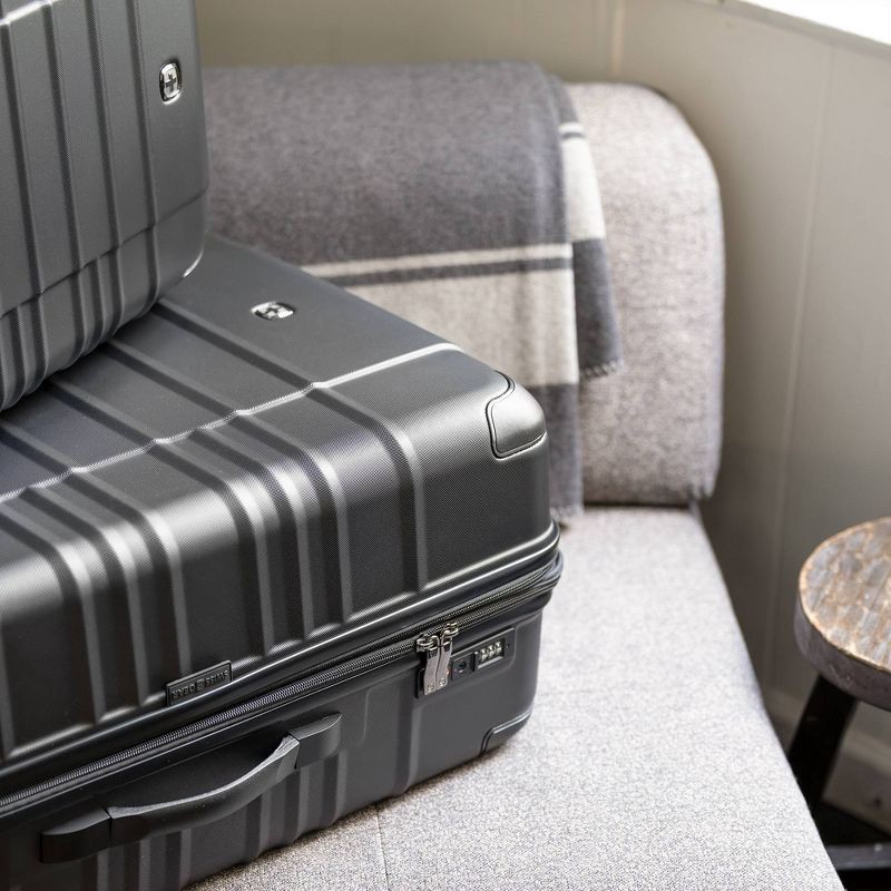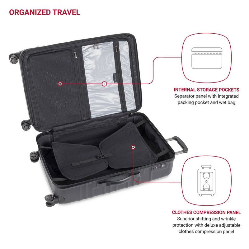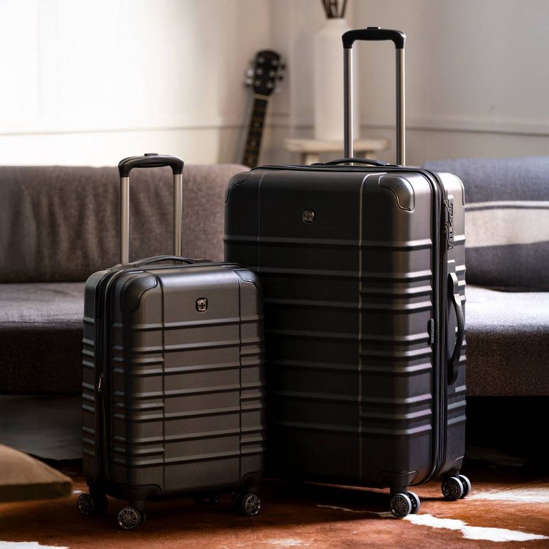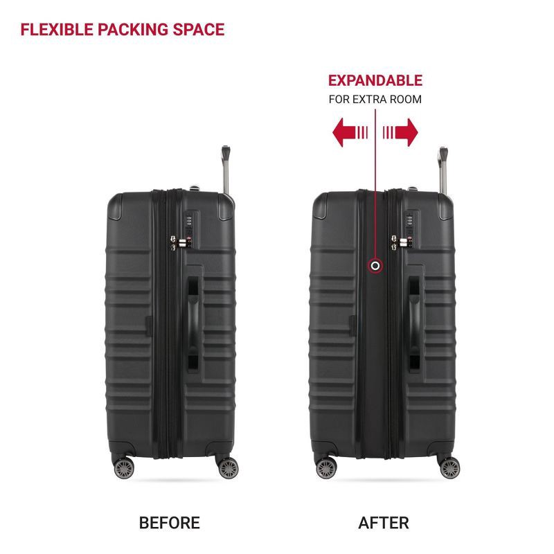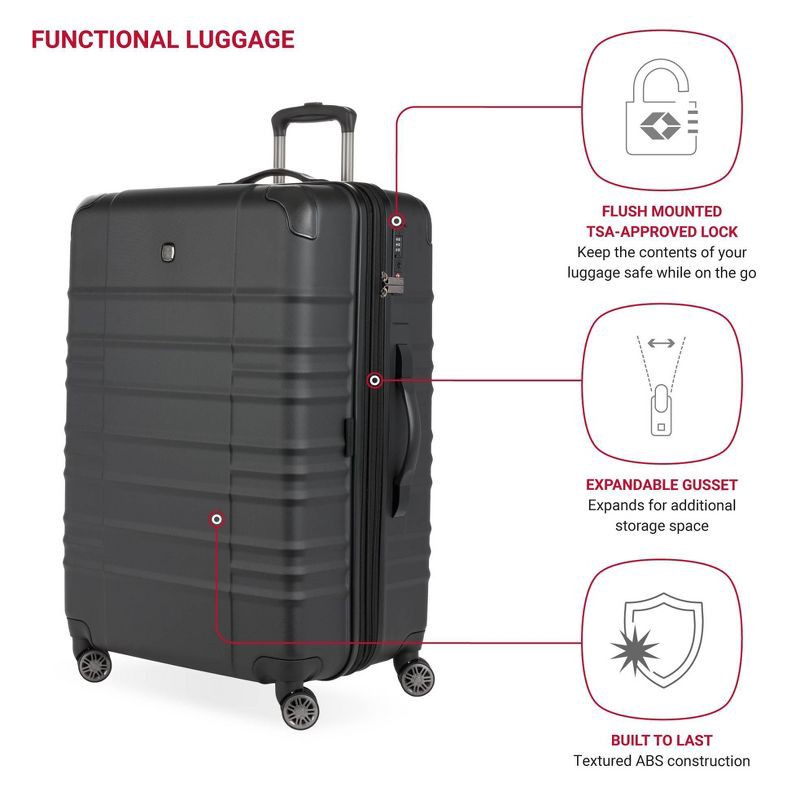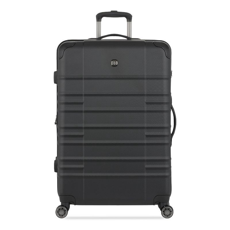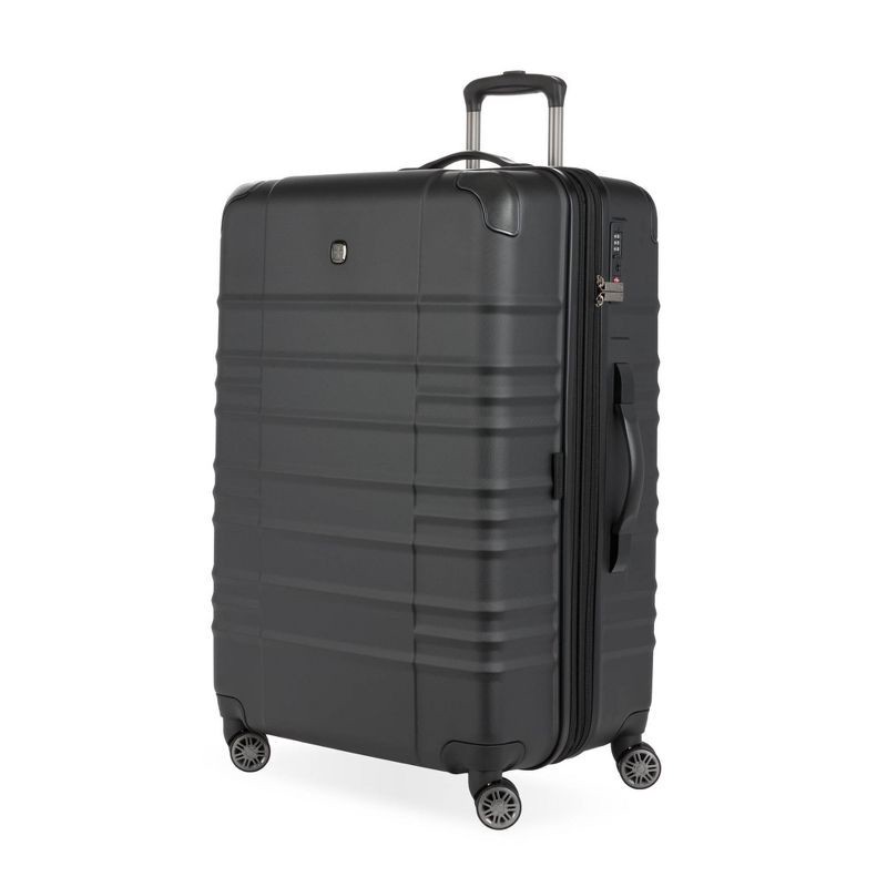 SWISSGEAR Cascade II Hardside Large Checked Spinner Suitcase - Black: 8-Wheel Tear-Resistant Luggage