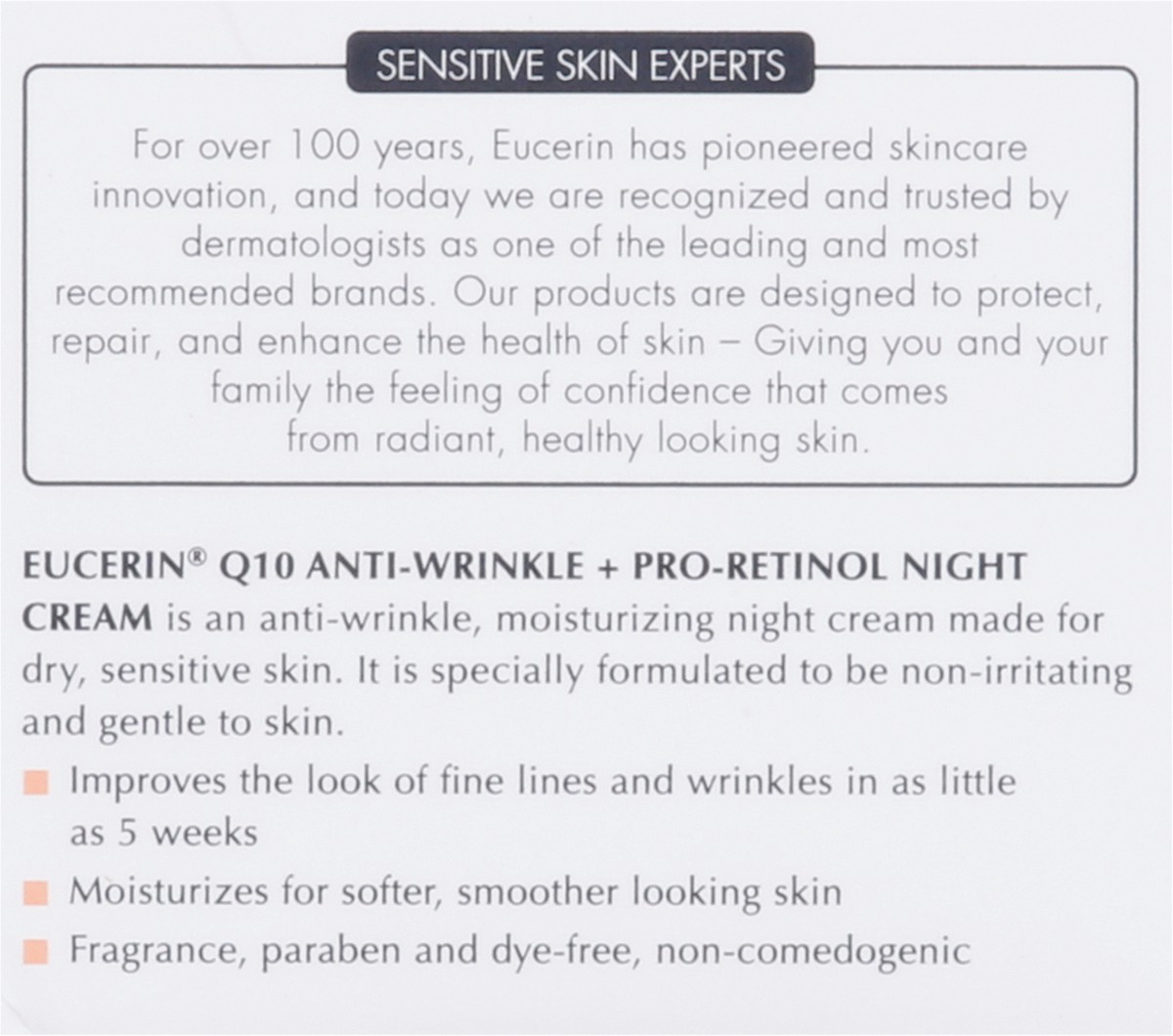 Eucerin Q10 Anti-Wrinkle Facial Night Cream + Pro-Retinol is a sensitive skin night cream that works while you sleep to help reduce the look of fine lines in as little as 5 weeks (1). This facial nig…