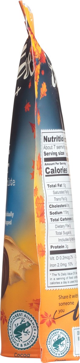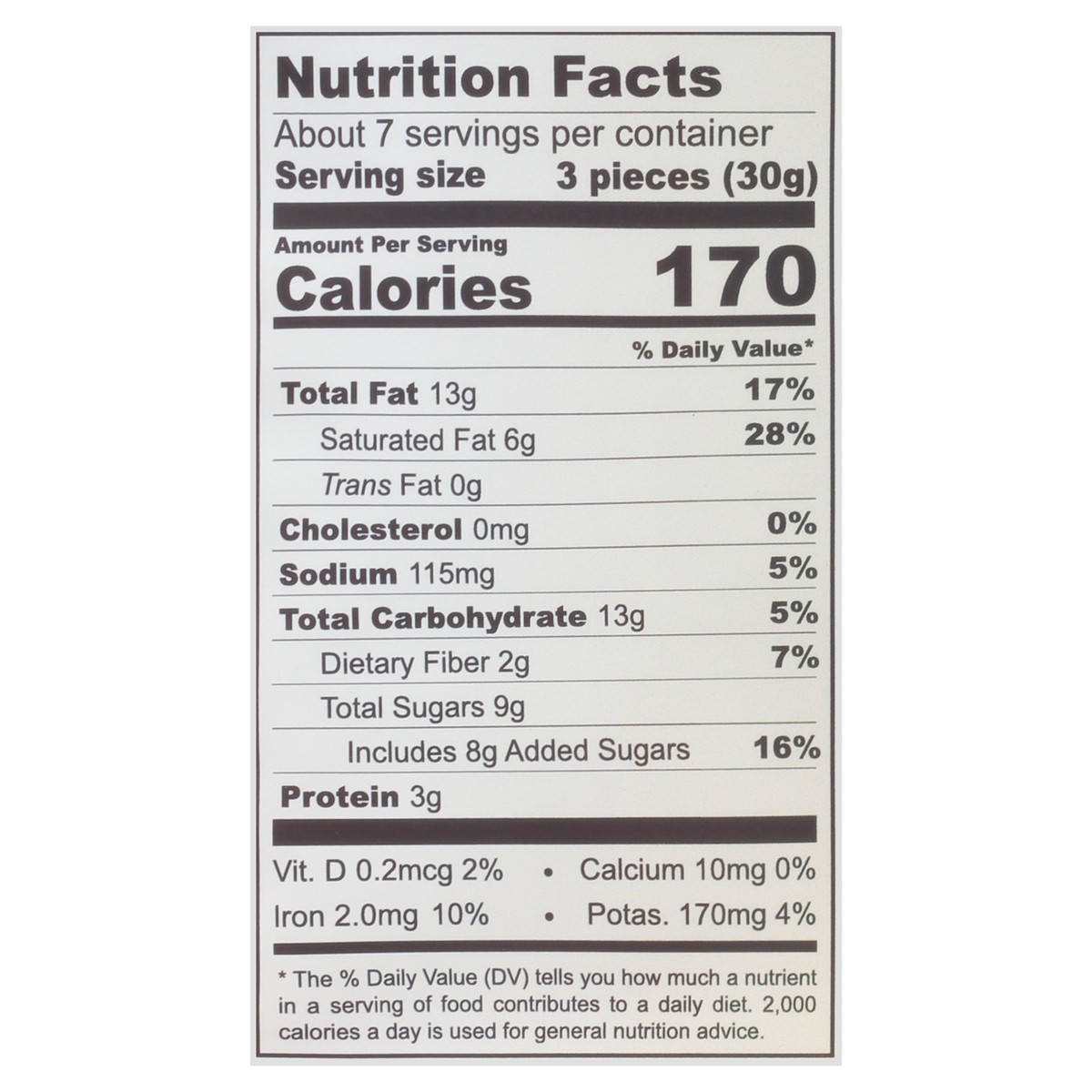 Dark Chocolate (Cocoa Liquor (Rainforest Alliance Certified, Find Out More at ra.org) Sugar, Cocoa Butter (Rainforest Alliance Certified, Find Out More at ra.org), Soy Lecithin and/or Sunflower Lecith…