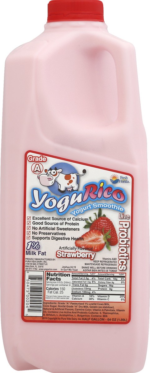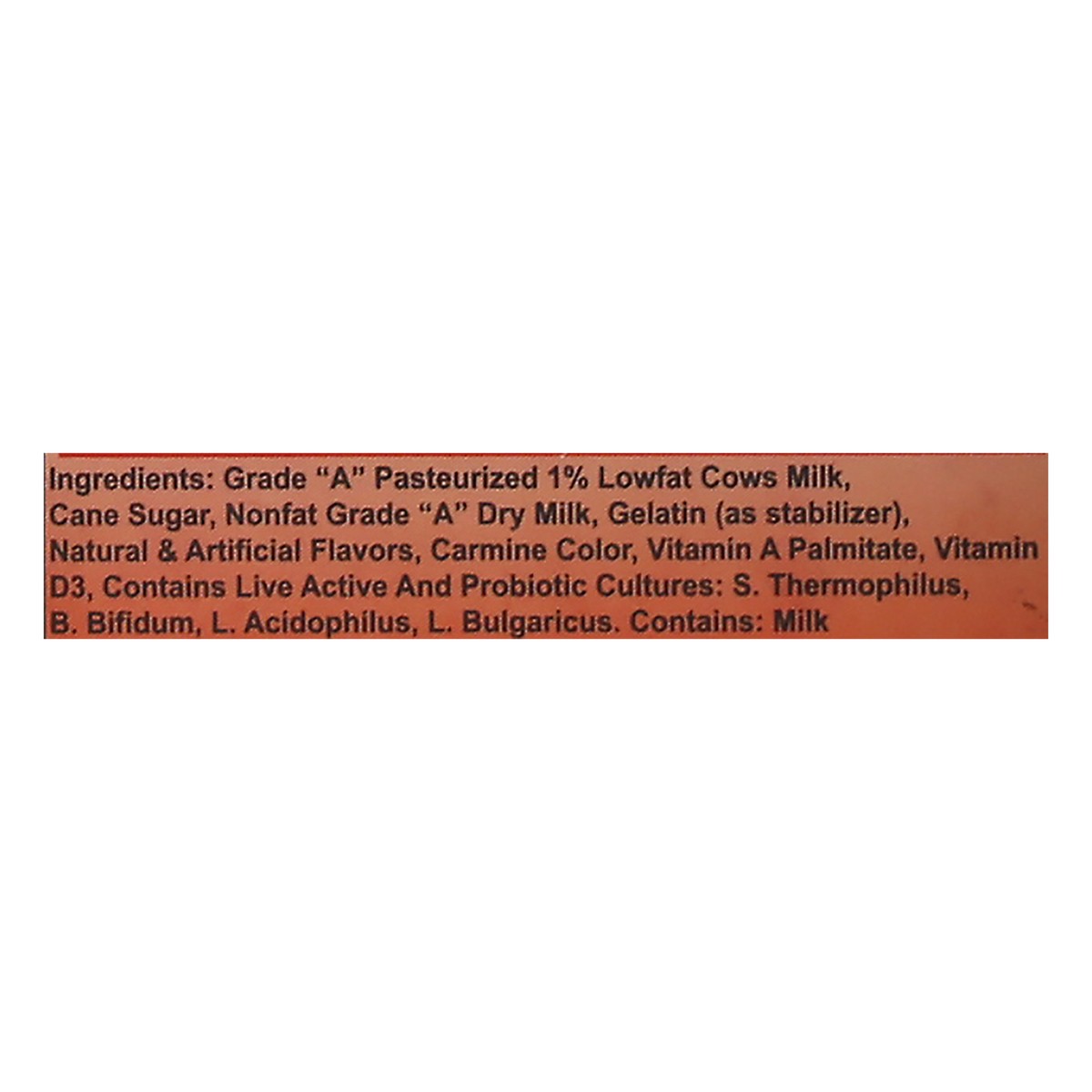 Grade "A" Pasteurized Low Fat Milk, Granulated Cane Sugar, Grade "A" Non Fat Dry Milk, Gelatin (as Stabilizer), Strawberry with Natural Flavors, Carmine Color, Vitamin A Palmitate, Vitamin D3. Starter…