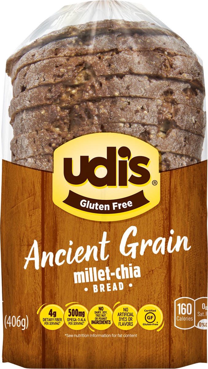 Enjoy bread, even while limiting your gluten intake, with Udi's Gluten Free Millet Chia Bread. This tasty combination of hearty seeds and soft texture makes this bread a deliciously different treat. I…