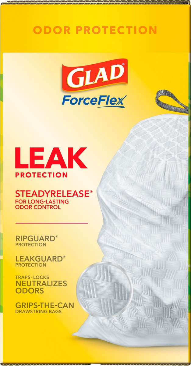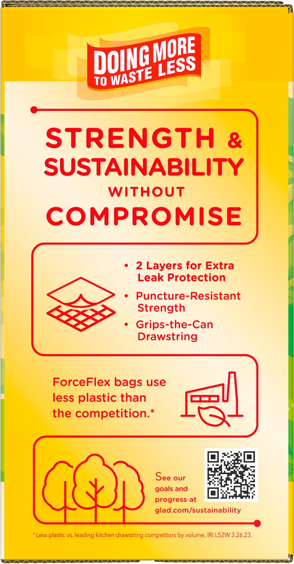 Let the stretchable strength of Glad ForceFlex handle all the messes our busy daily life can throw at it and then some. Glad Tall Kitchen Drawstring Trash Bags are designed with ForceFlex technology t…