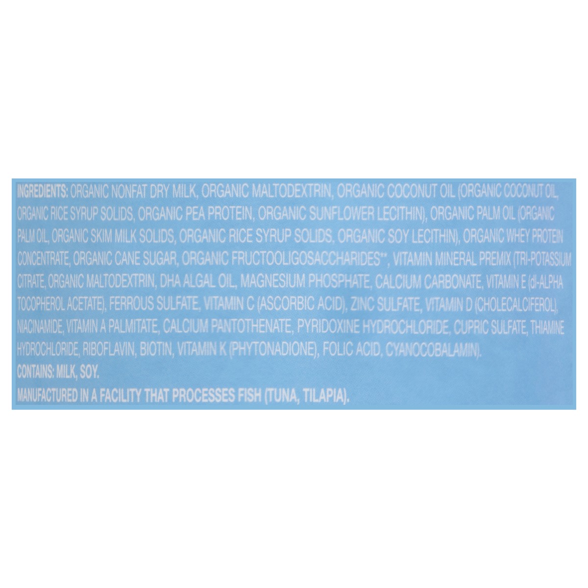 Organic Nonfat Dry Milk, Organic Maltodextrin, Organic Coconut Oil (Organic Coconut Oil, Organic Rice Syrup Solids, Organic Pea Protein, Organic Sunflower Lecithin), Organic Palm Oil (Organic Palm Oil…
