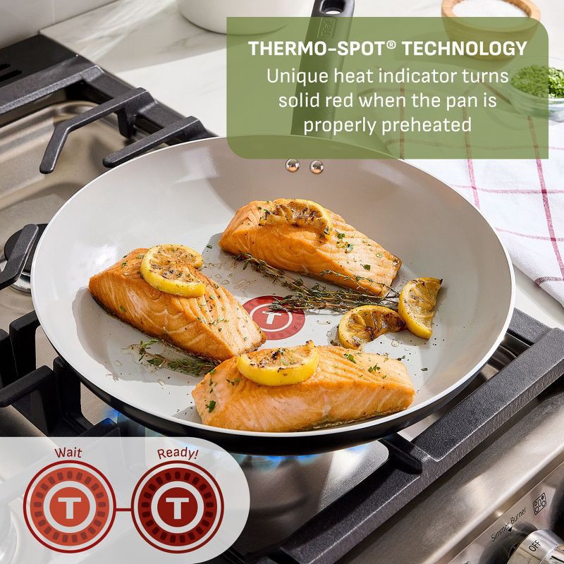 - Thermo-Spot Technology® is our unique heat indicator that turns solid red when pans are properly pre-heated and ready to cook.