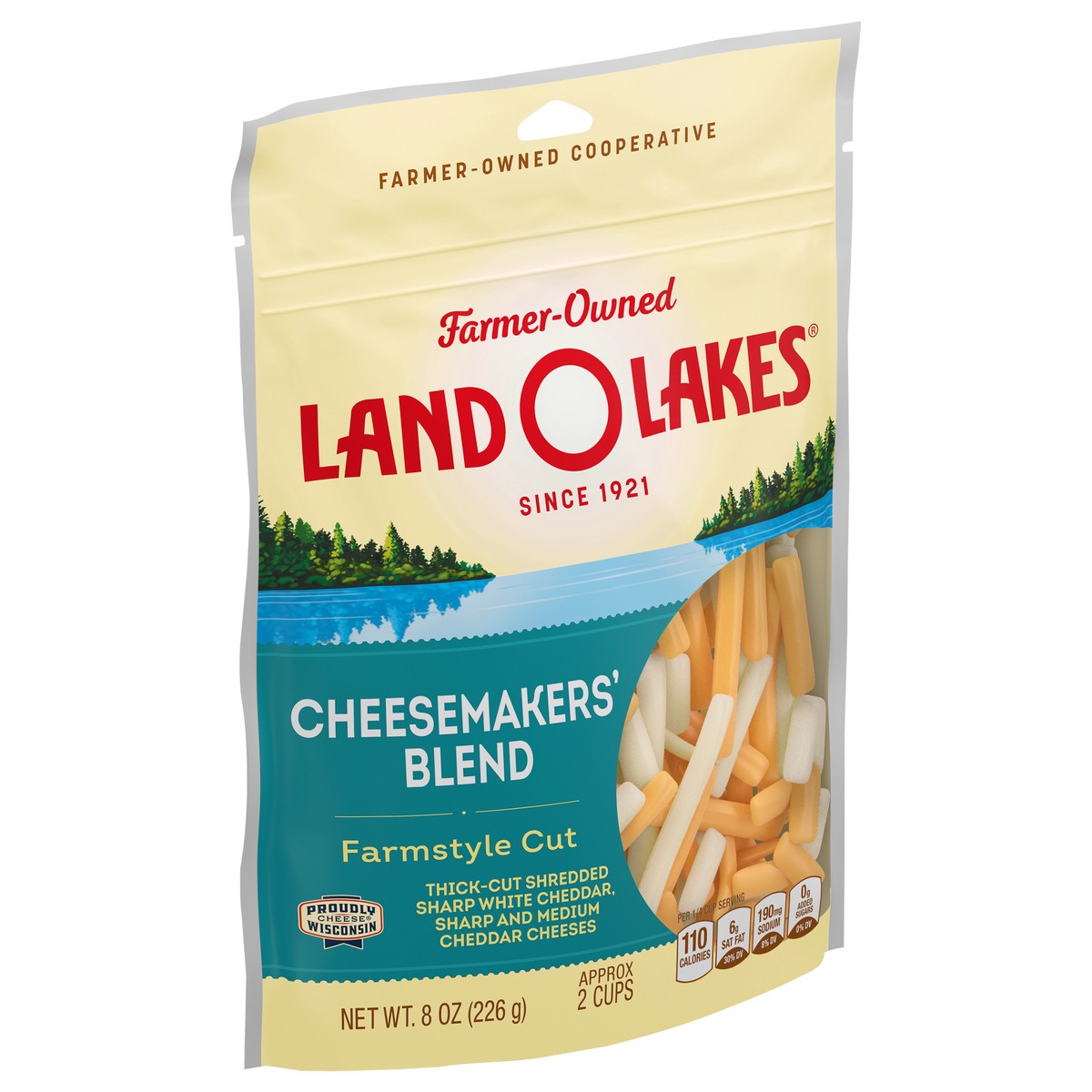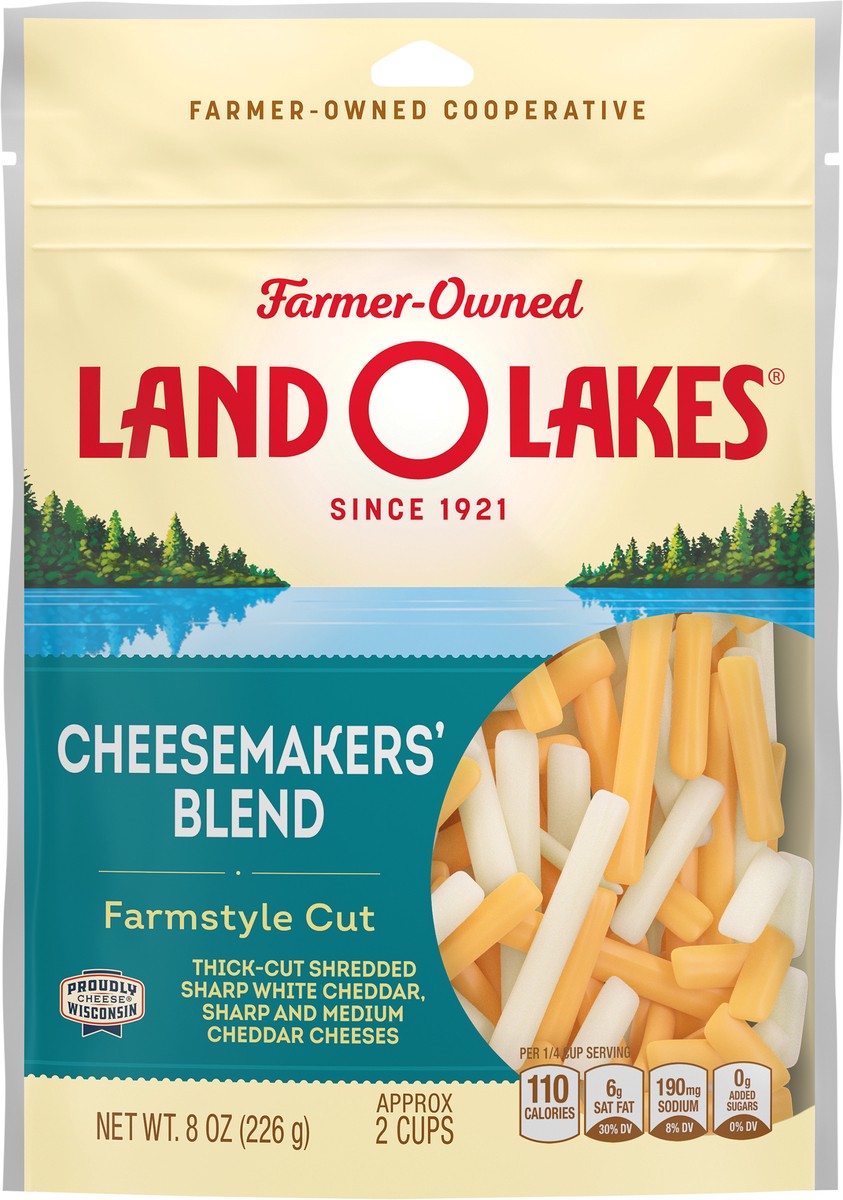 Land O'Lakes Cheesemakers' Blend Farmstyle Cut Shredded Cheese, Cheddar Blend, 8 oz bag