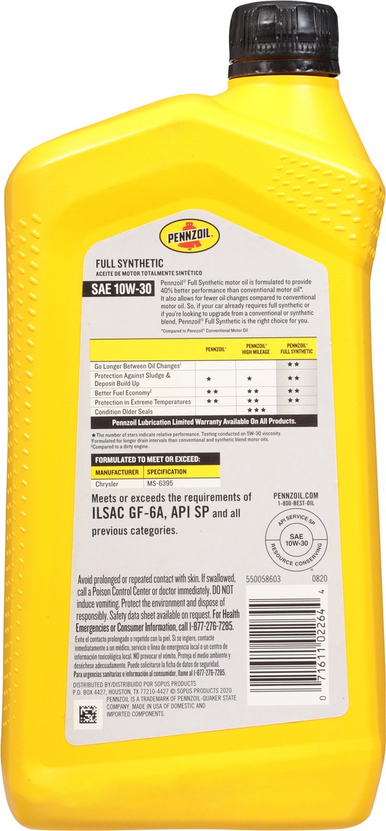 40% better performance than conventional motor oil (Compared to Pennzoil conventional motor oil). Pennzoil Full Synthetic motor oil is formulated to provide 40% better performance than conventional mo…
