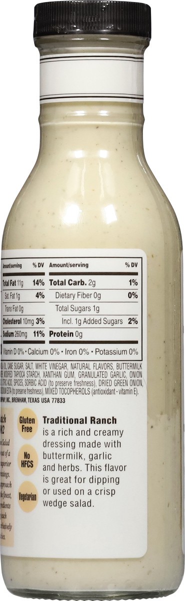 Gluten free. Vegetarian. New! Go Texan. No HFCS. Vegetarian. Traditional Ranch is a rich and creamy dressing made with buttermilk, garlic and herbs. This flavor is great for dipping or used on a crisp…