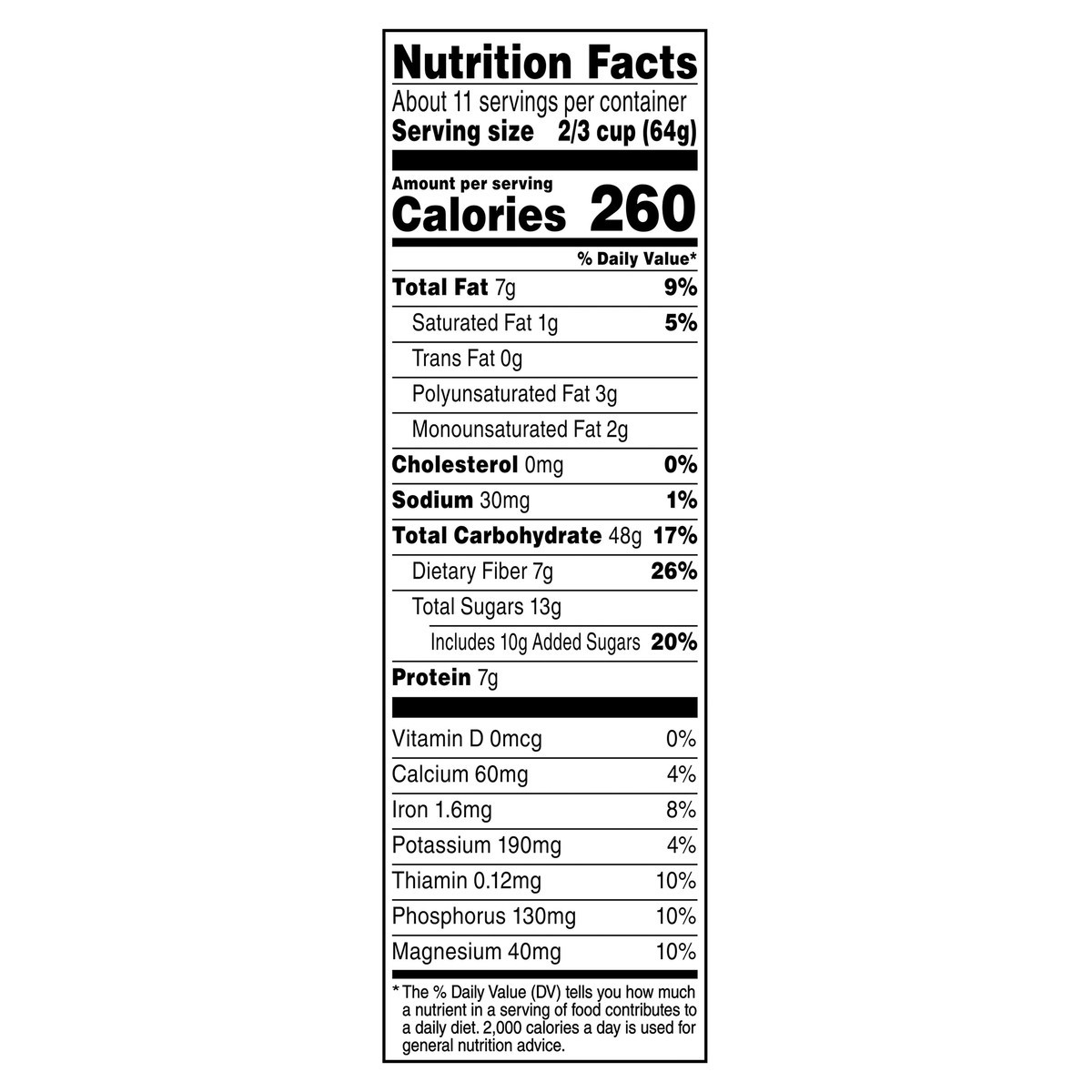 Whole Grain Oats, Whole Grain Wheat, Sugar, Vegetable Oil (Canola and/or Soybean Oil), Whey, Inulin, Almonds, Nonfat Dry Milk, Molasses, Whey Protein Concentrate, Honey, Natural Flavor, Sunflower Oil,…