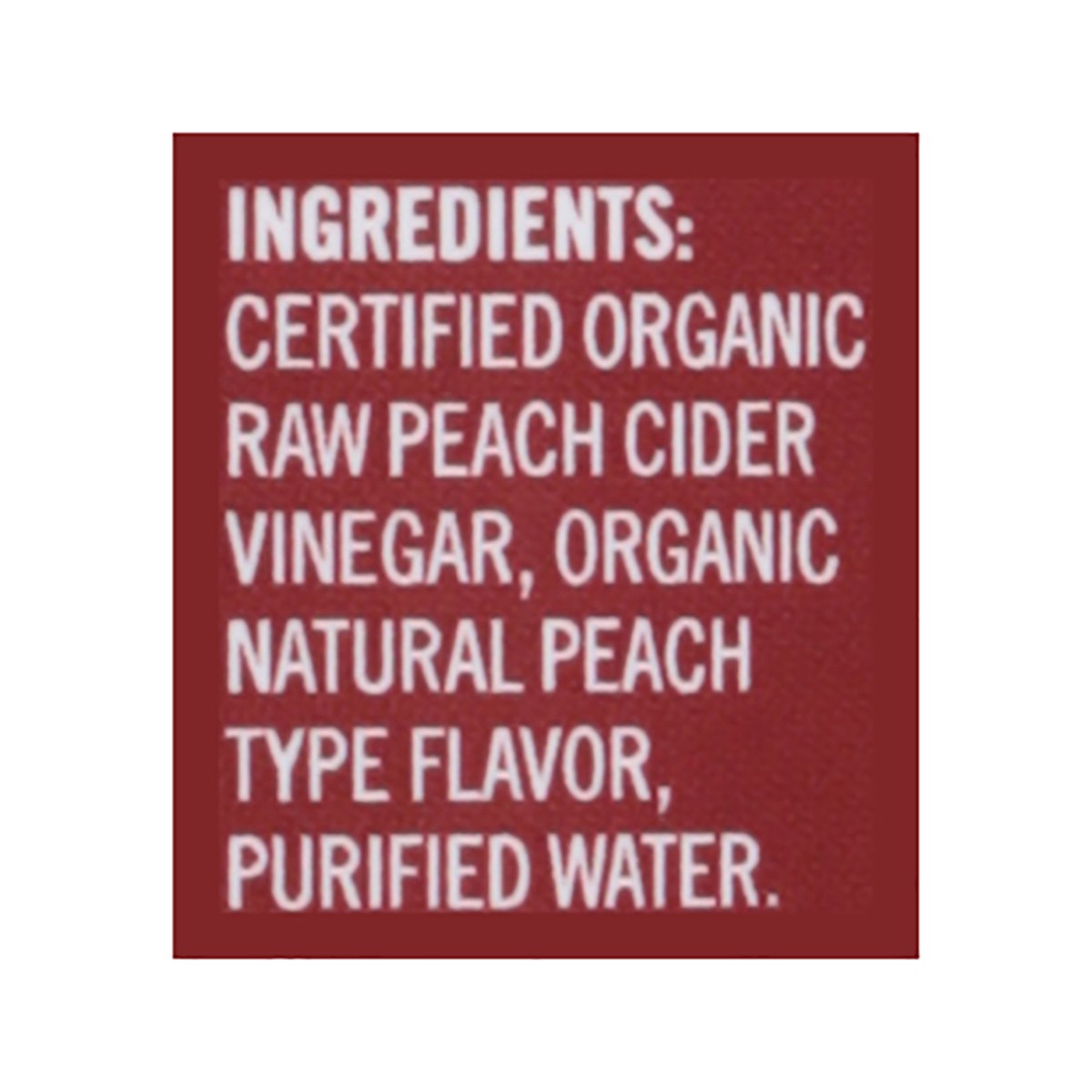 Certified Organic Raw Peach Cider Vinegar, Organic Natural Peach Type Flavor, Purified Water.