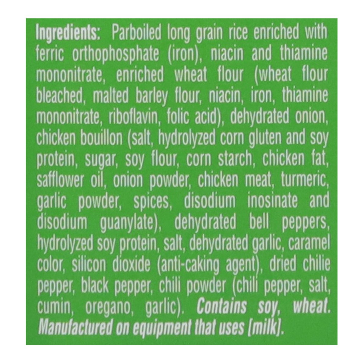 Parboiled Long Grain Rice Enriched with Ferric Orthophosphate (Iron), Niacin and Thiamine Mononitrate, Enriched Wheat Flour (Wheat Flour Bleached, Malted Barley Flour, Niacin, Iron, Thiamine Mononitra…