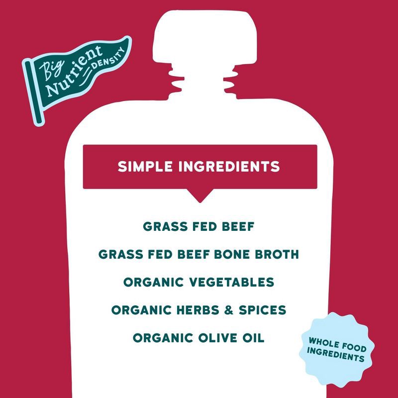 - Made with high quality grass-fed beef, ethically sourced bone broth and organic vegetables, herbs and olive oil