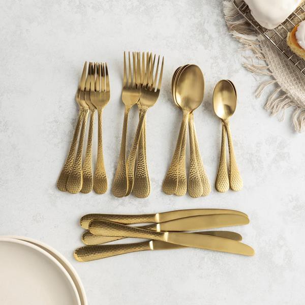 Hy-Vee Seasons 20-Piece Cobblestone Hammered Flatware, Gold