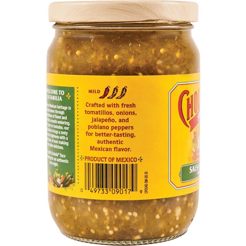 - Salsa Verde is made with fresh tomatillos, onions, jalapeños and poblano peppersMild salsa that's ideal for taco nights and other family dinnersThe perfect dip for tortilla chipsAdds authentic Mexican flavor to everything from tostadas and enchiladas to seafood and chickenFrom Cholula, the trusted brand with the hot sauce from Mexico