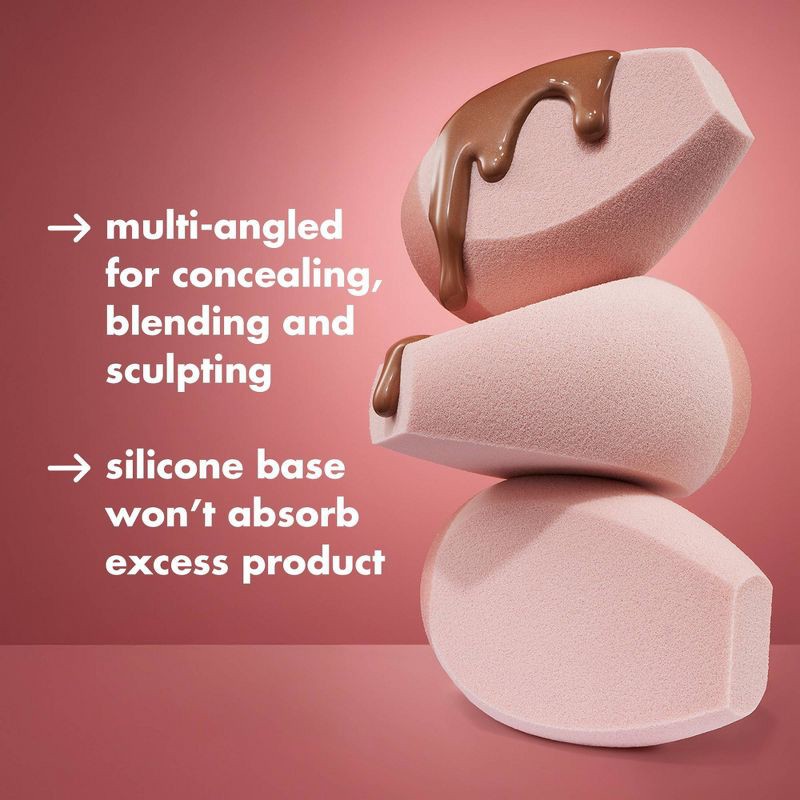 - 3-sided, multi-use face sponge with angled design for versatility and flawless application