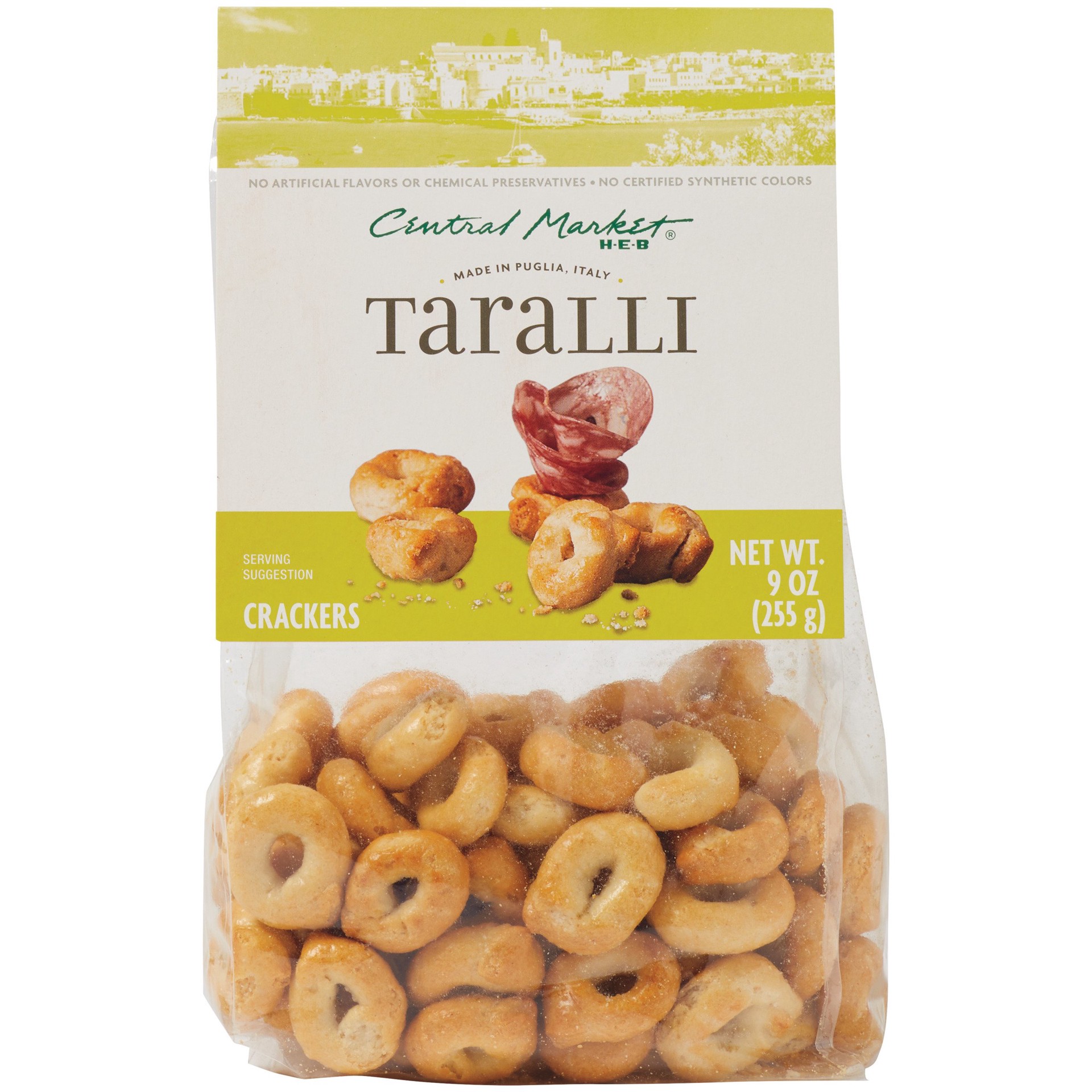 Made with 5 simple ingredients — wheat flour, white wine, olive oil, sea salt and EVOO — Central Market Taralli crackers are shaped like mini donuts and make a unique addition to your charcuterie or c…
