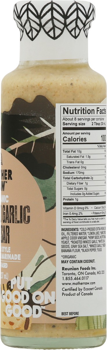 Cold-Pressed Extra Virgin Olive Oil (Organic), Filtered Water, Lemon Juice (Organic), Unfiltered Apple Cider Vinegar (Organic), Hemp Seeds (Organic), Nutritional Yeast, Roasted Minced Garlic (Organic)…