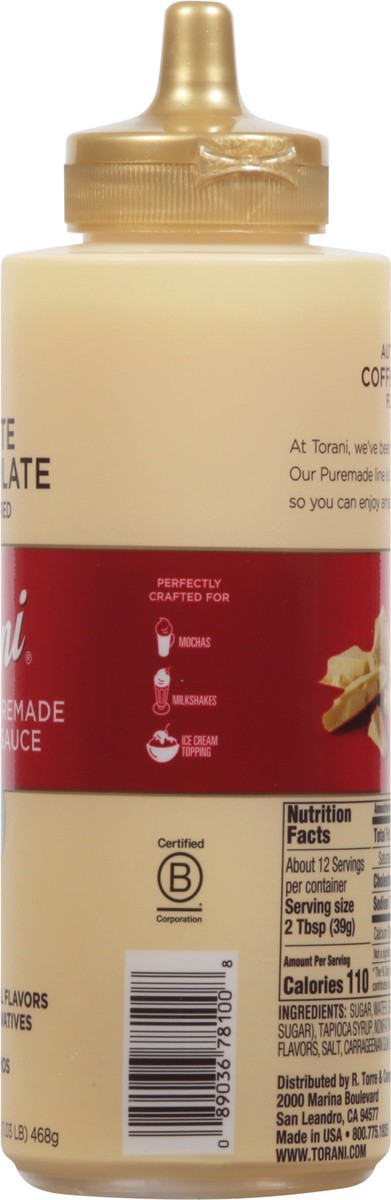 Torani Puremade White Chocolate Sauce - 16.5 Oz