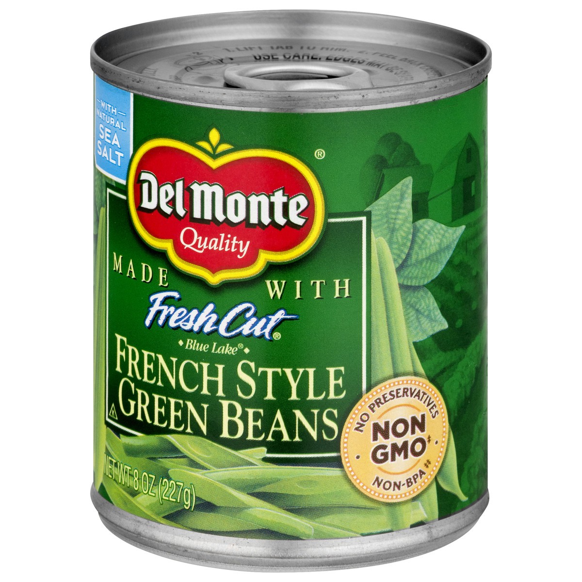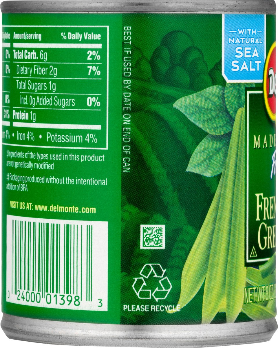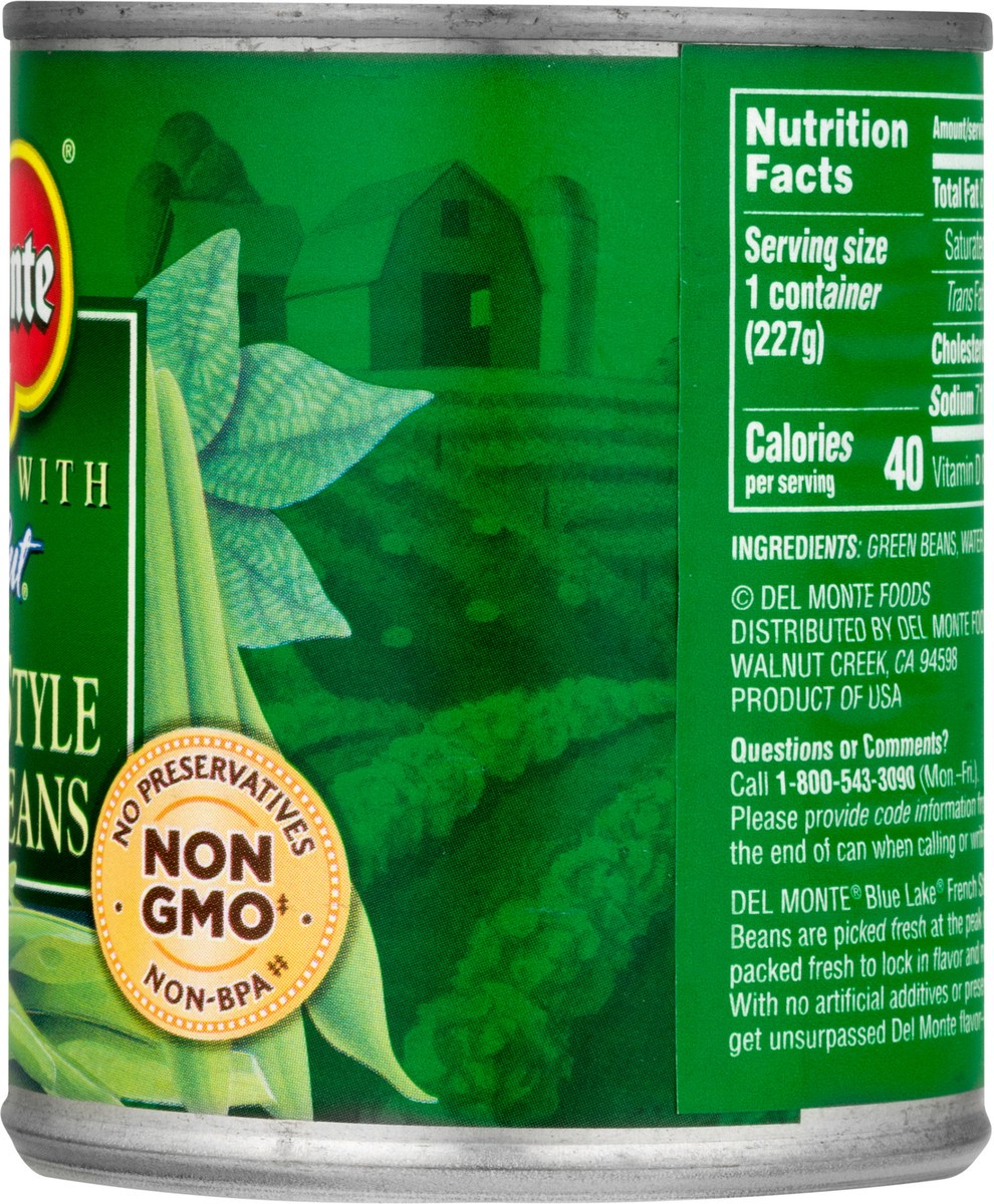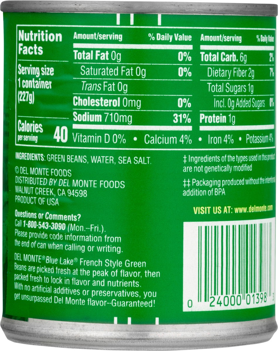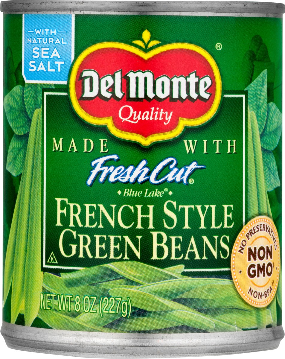 Made with fresh cut french style green beans. Non GMO (Ingredients of the types used in this product are not genetically modified). With natural sea salt. No preservatives. Del Monte Blue Lake French …