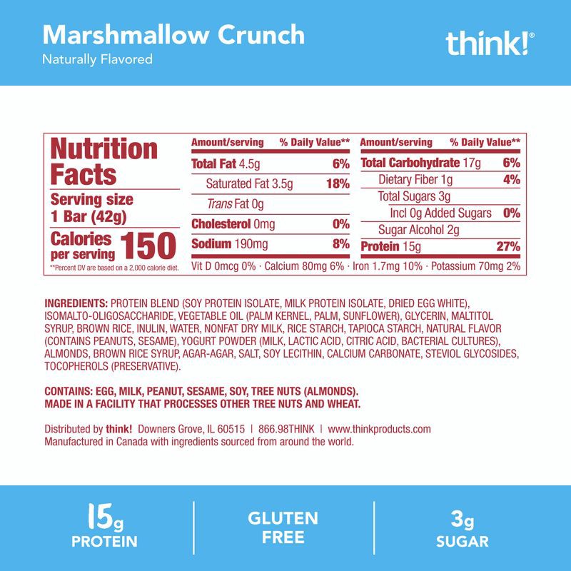 think! Marshmallow Crunch High Protein Crispy Squares - 15g Protein - 1.48oz/4ct
