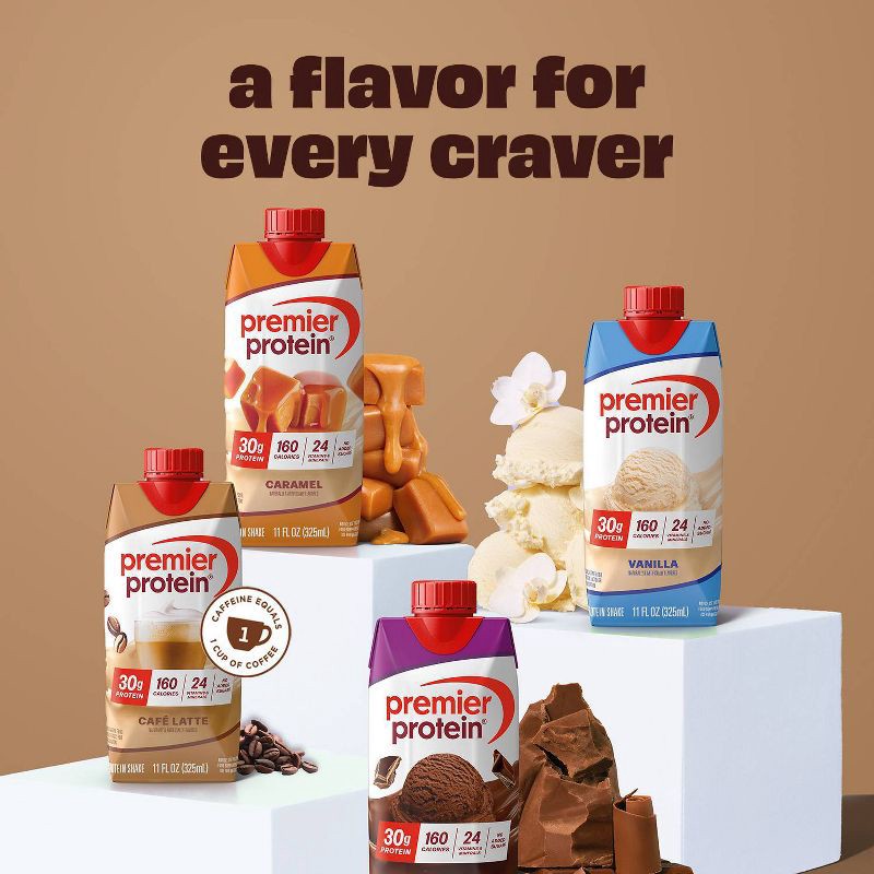Premier Protein Nutritional Shake Café Latte Caffeinated - 11 fl oz/4pk: Keto Certified, Ready to Drink, Gluten-Free, 30g Protein Per Serving