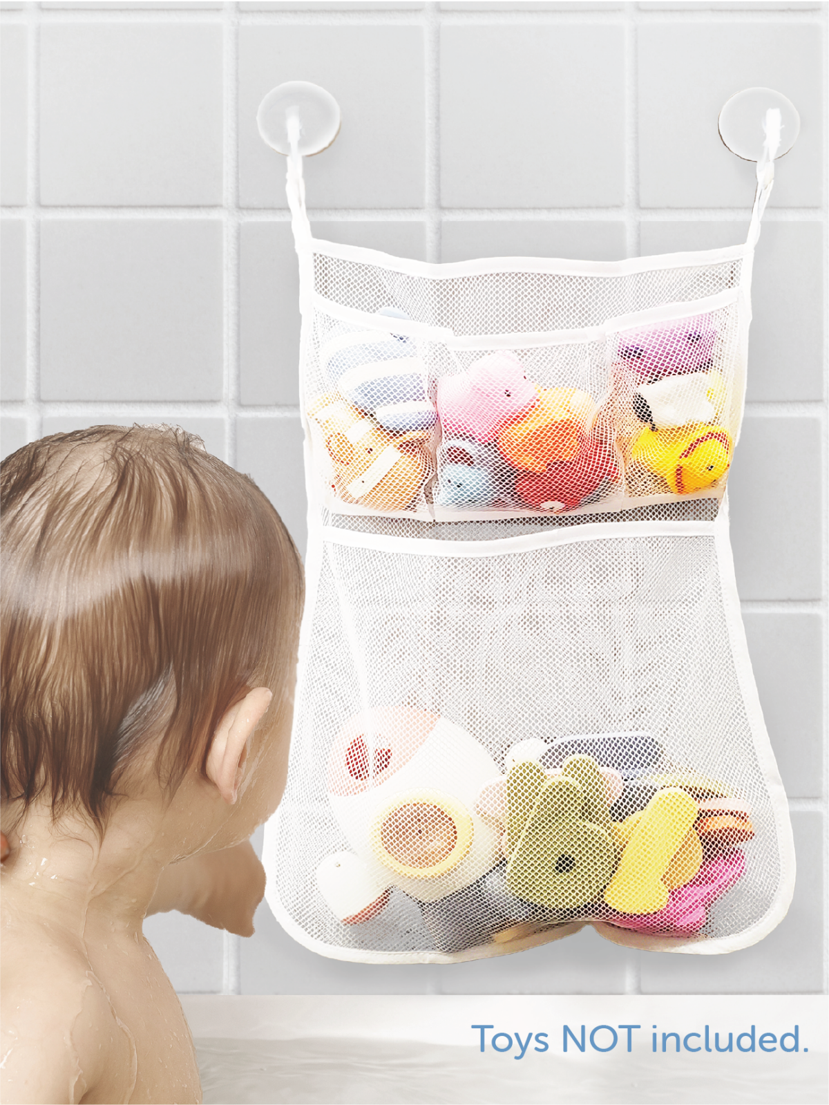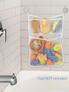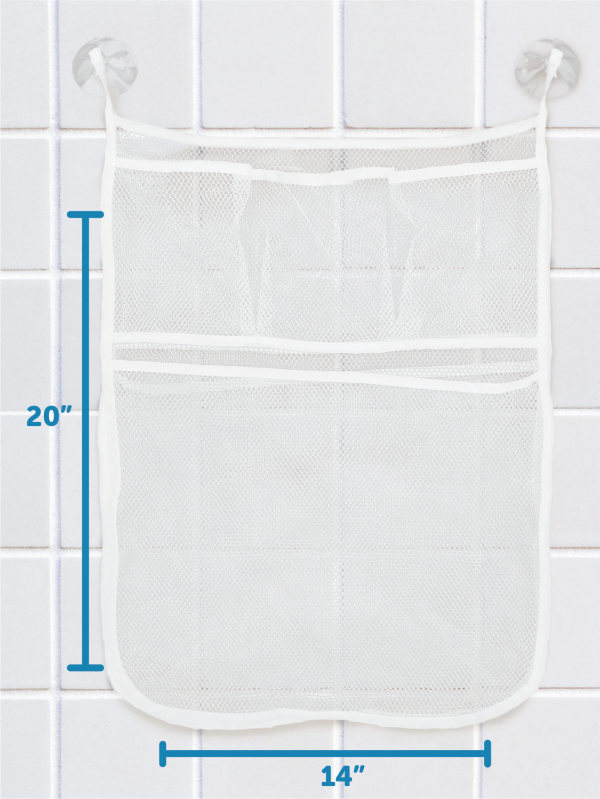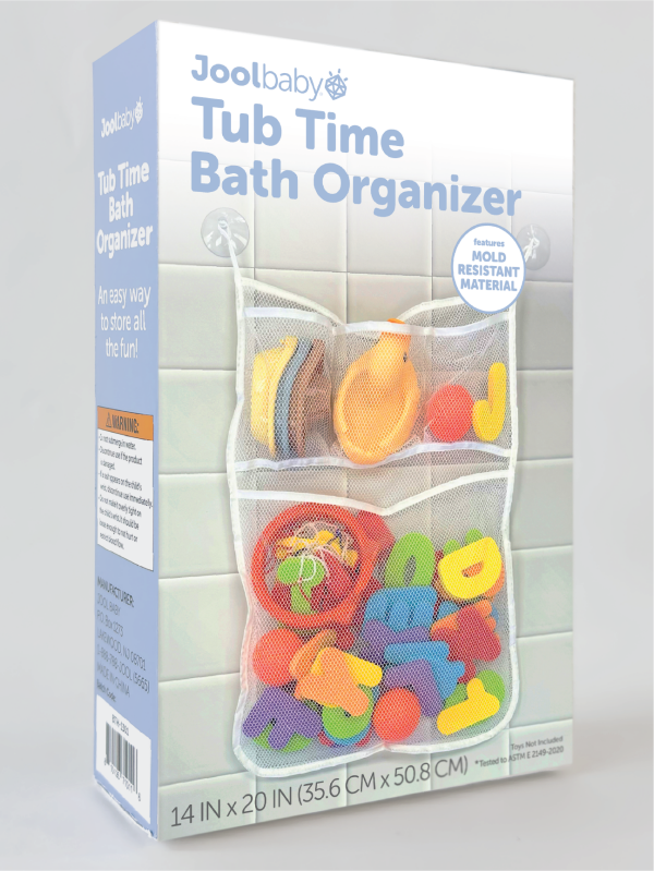 Tub Time Bath Organizer keeps bath toys organized and your tub clutter-free. The material is mold-resistant and the mesh bag allows toys to air-dry.