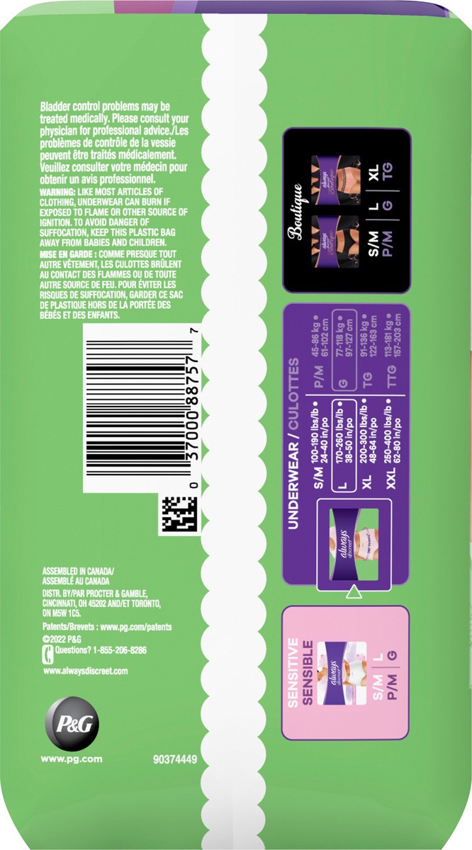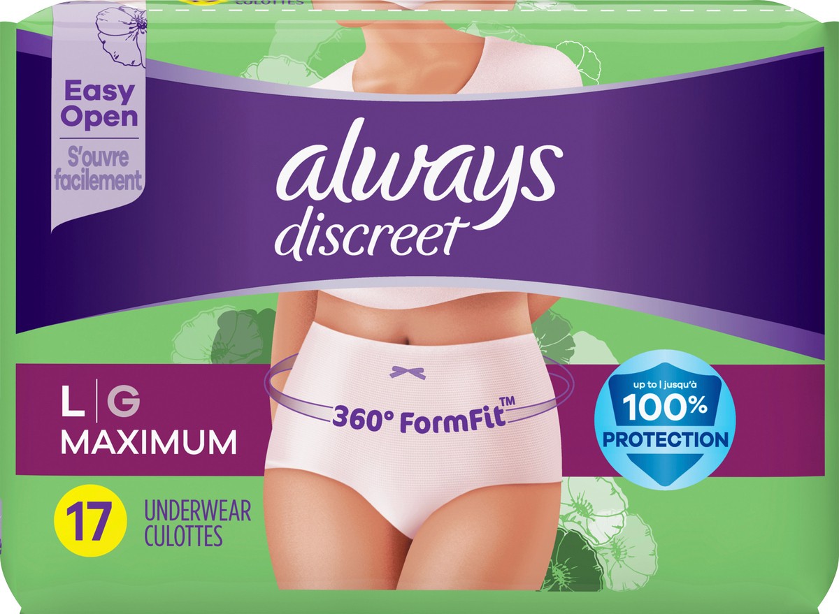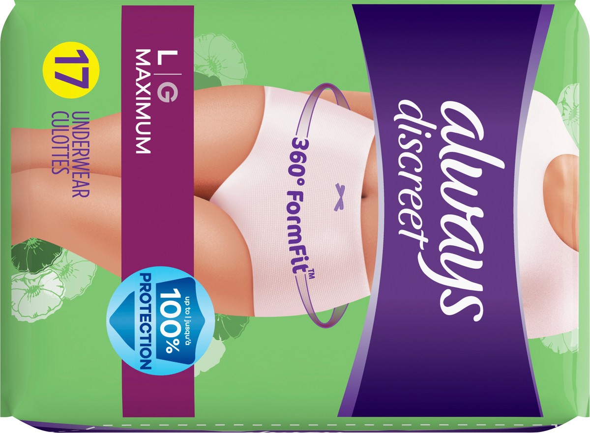 Always Discreet Adult Incontinence Underwear for Women and Postpartum Underwear, L, Up to 100% Bladder Leak Protection, 17 CT