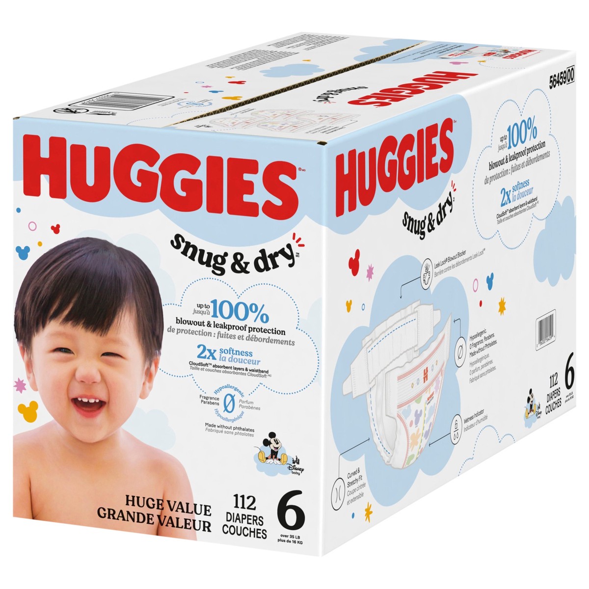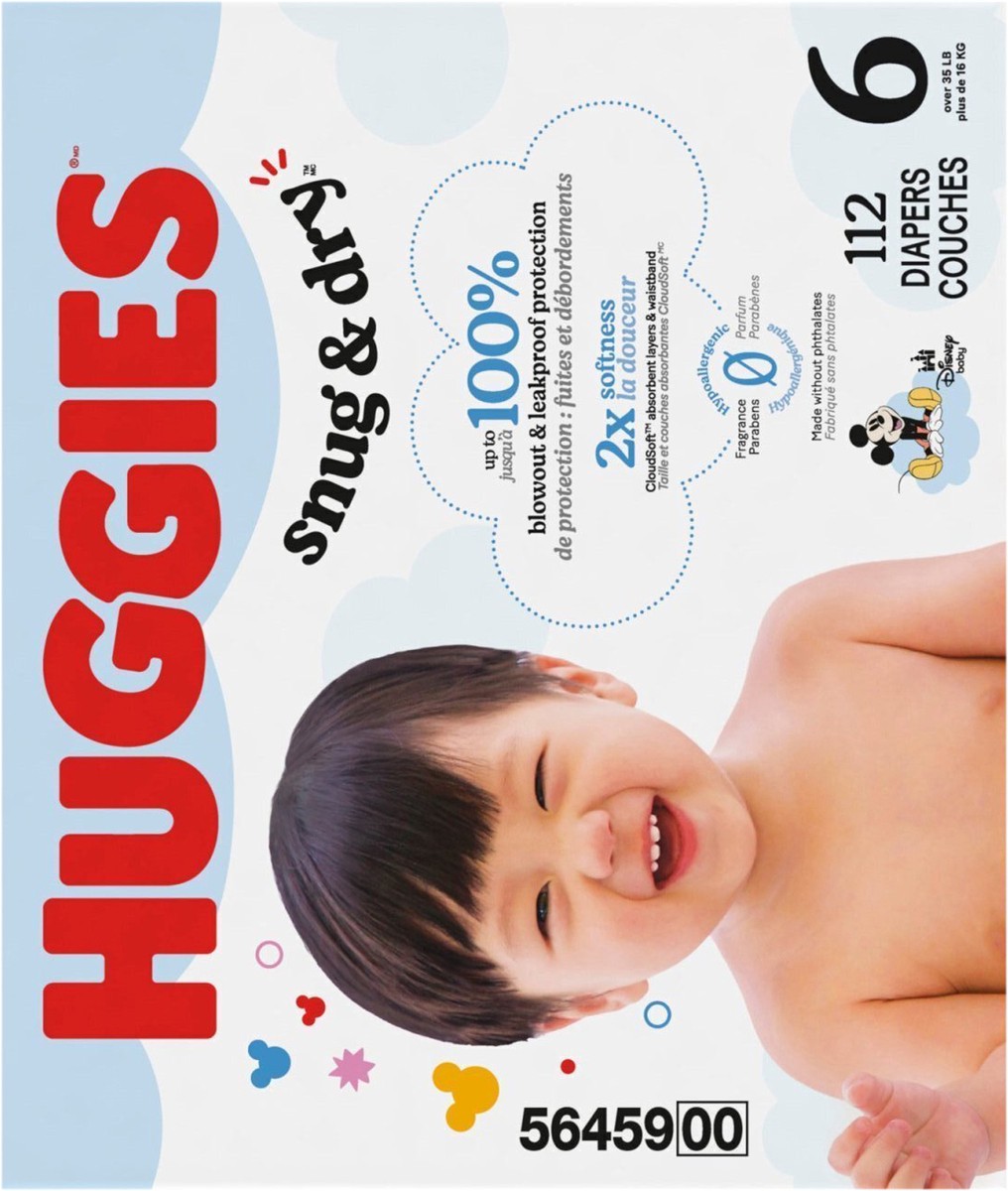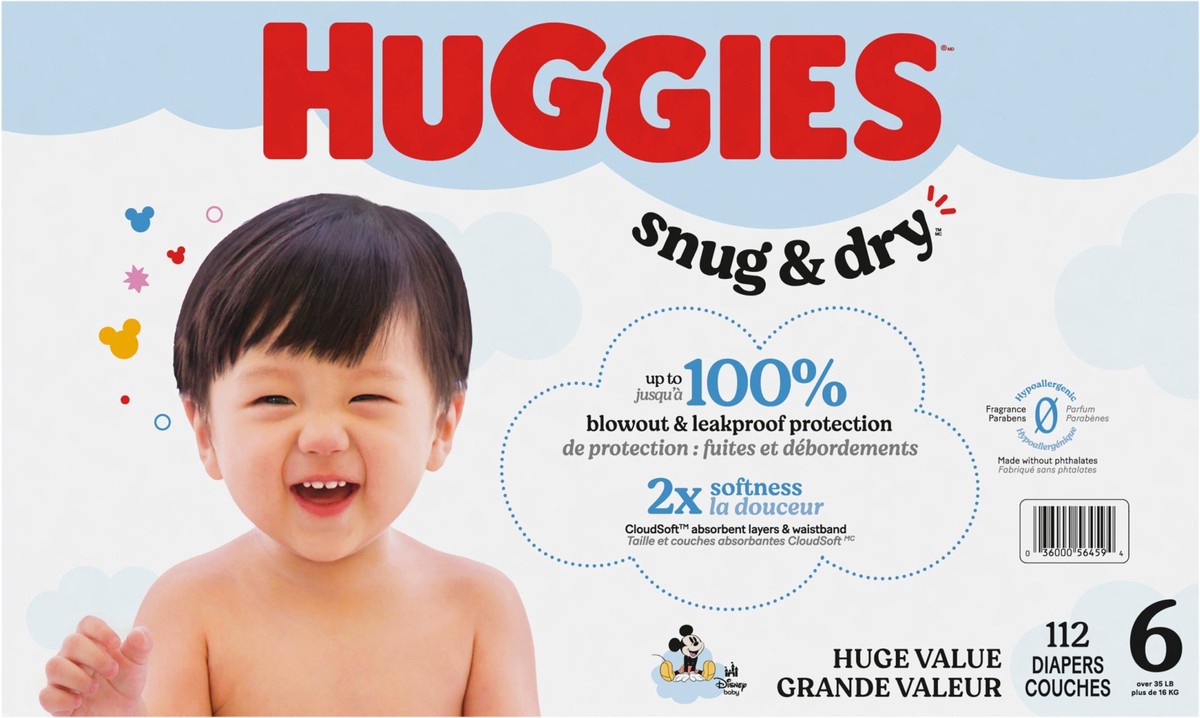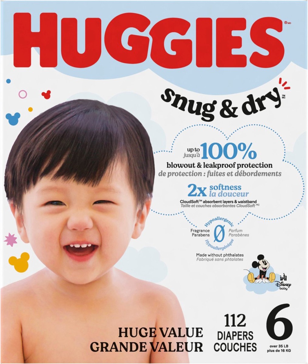 Huggies Snug & Dry Baby Diapers, Size 6 (35+ lbs), 112 Ct