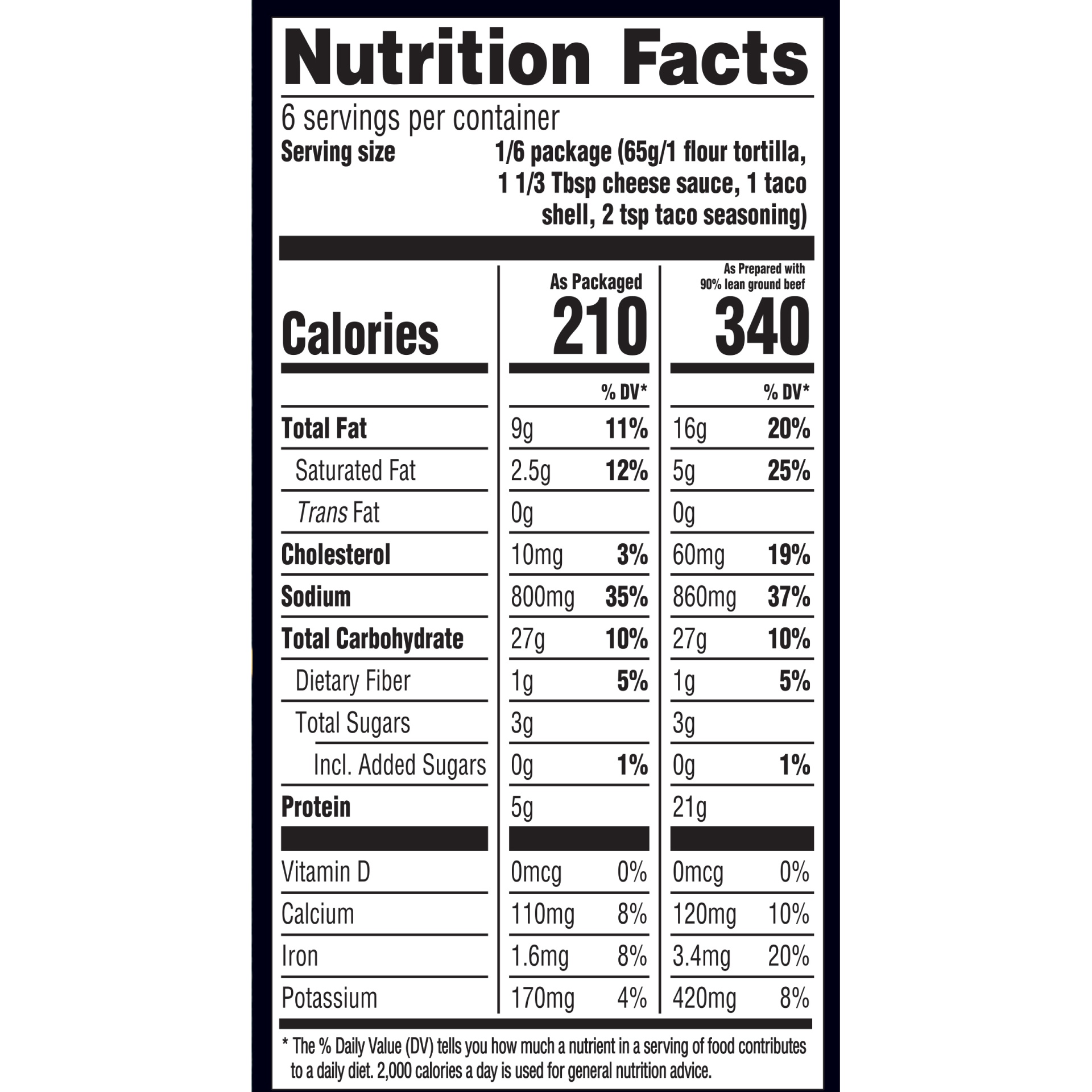 - One 14 oz Taco Bell Cheesy Double Decker Taco Cravings Kit with 6 Soft Tortillas