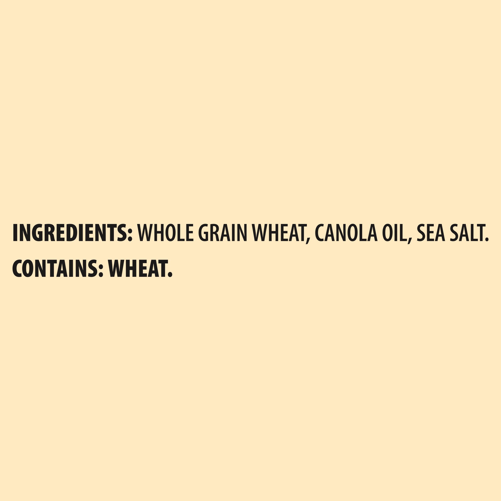 INGREDIENTS: WHOLE GRAIN WHEAT, CANOLA OIL, SEA SALT.CONTAINS: WHEAT.