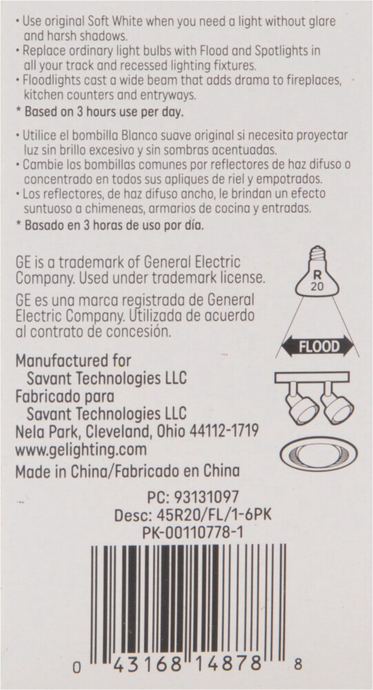 GE Directional Indoor Floodlight Soft White 45 Watts R20 Bulb 1 ea