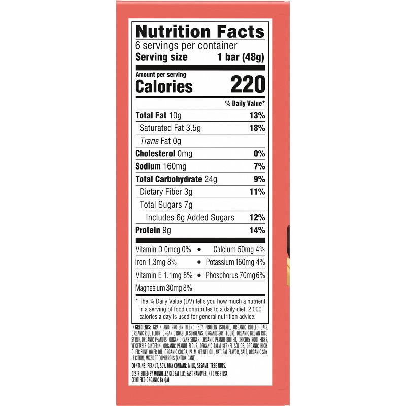 Grain and Protein Blend (Soy Protein Isolate, Organic Rolled Oats, Organic Rice Flour, Organic Roasted Soybeans, Organic Soy Flour), Organic Brown Rice Syrup, Organic Peanuts, Organic Cane Sugar, Orga…