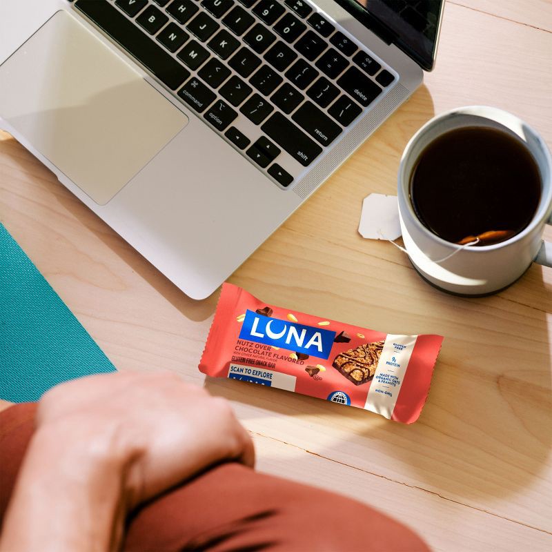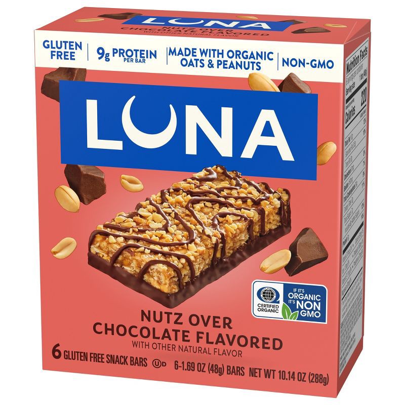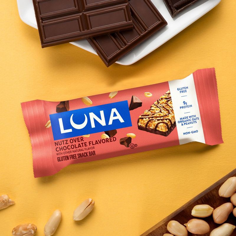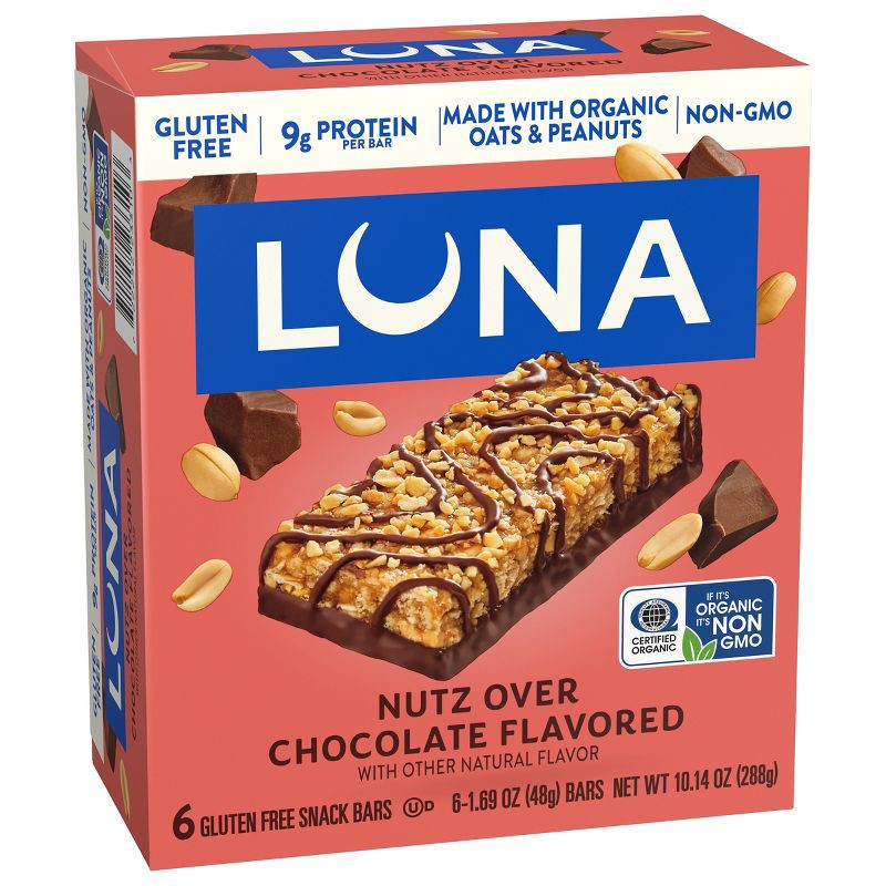 - WHAT YOU GET: One 6-pack box of LUNA Bar Nutz Over Chocolate Flavor Gluten Free Snack Bars (packaging may vary)