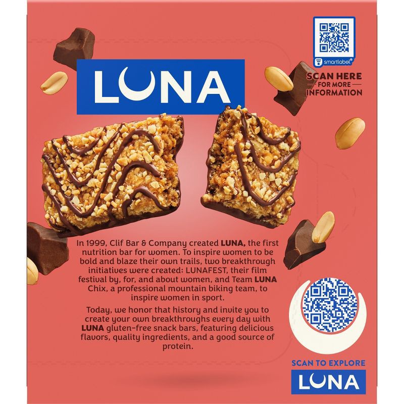 Bite into delight with LUNA Bar Nutz Over Chocolate Flavor Gluten Free Snack Bars. Made with organic rolled oats, cocoa, and organic peanuts and offering 9 grams of plant based protein per bar, LUNA g…