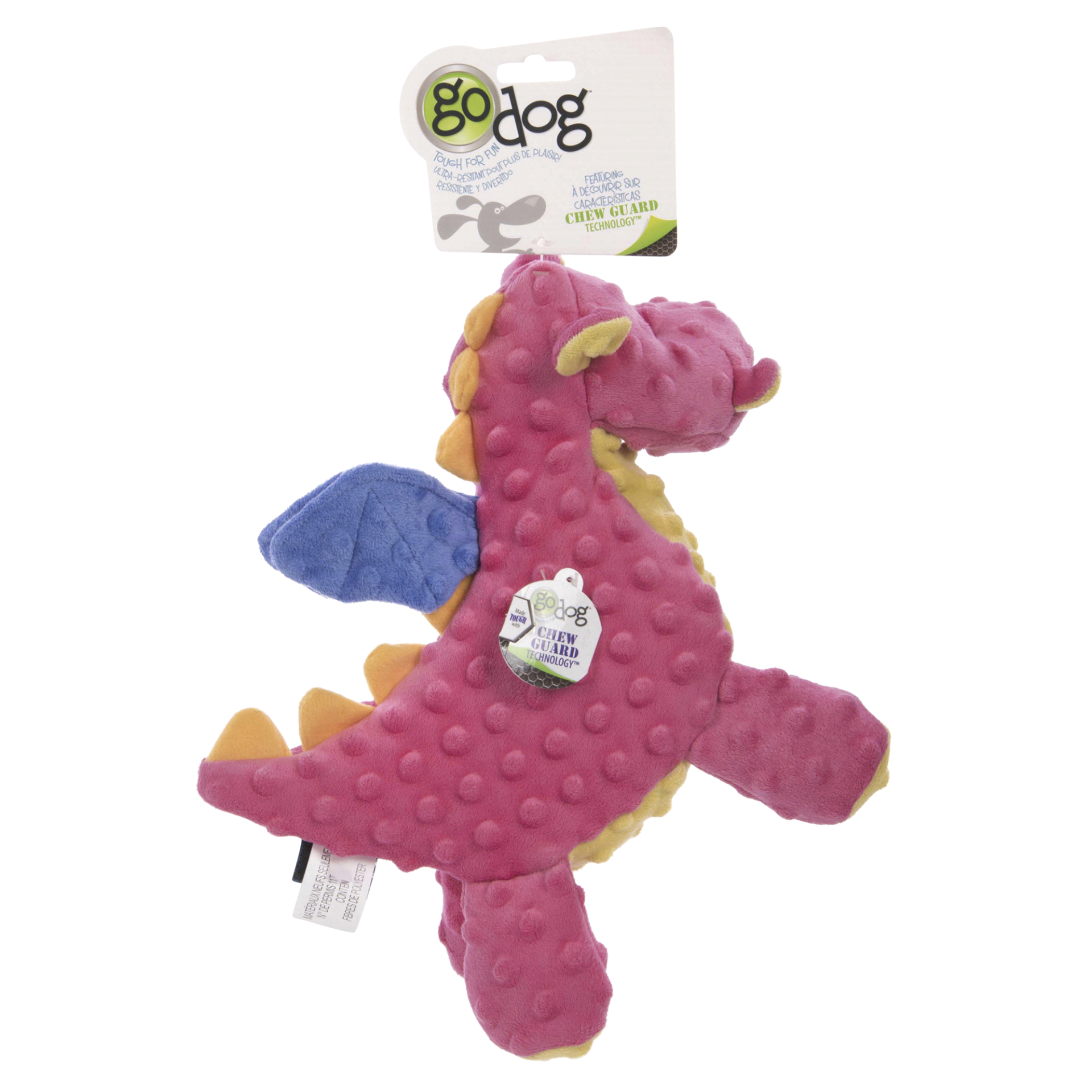 GoDog Coral Dragon Plush Dog Toy with Chew Guard Technology, Large