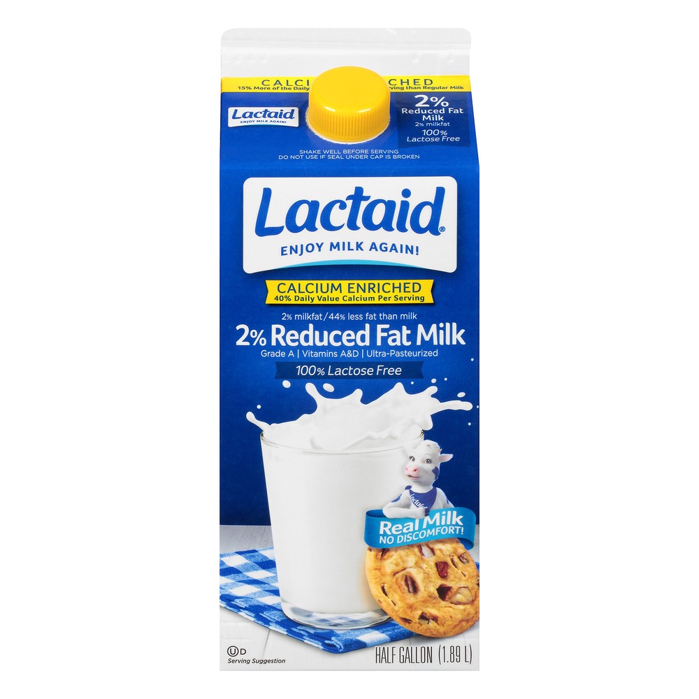 LACTAID Calcium-Enriched 2% Reduced Fat Lactose-Free Milk is a good source of protein, vitamins, and has 1.5X more Calcium than regular milk. And it''s 100% real milk, just without the lactose, so you…