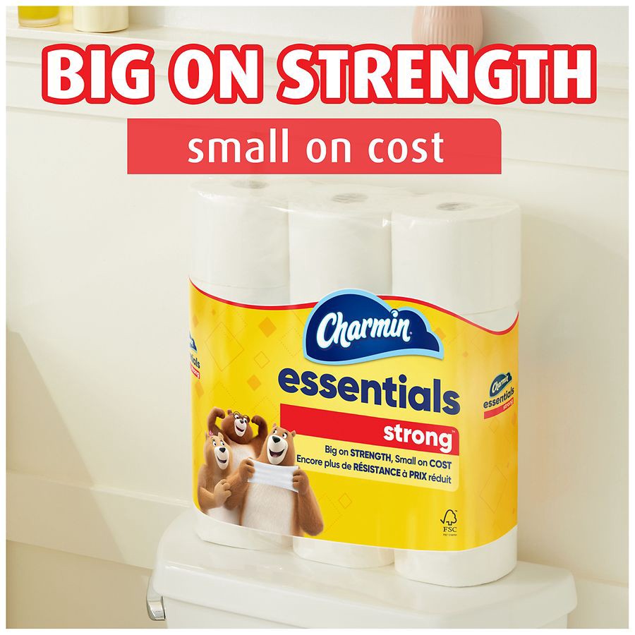 Looking for TP that's big on strength, small on cost? Charmin Essentials Strong Mega Roll has you covered. It's 3x stronger when wet* so it holds up while you clean. And we made sure it strikes the pe…