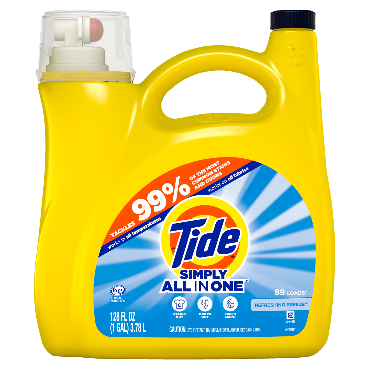 Tide Simply All-In-One Liquid Laundry Detergent, Refreshing Breeze Scent, 89 Loads, 117 fl oz