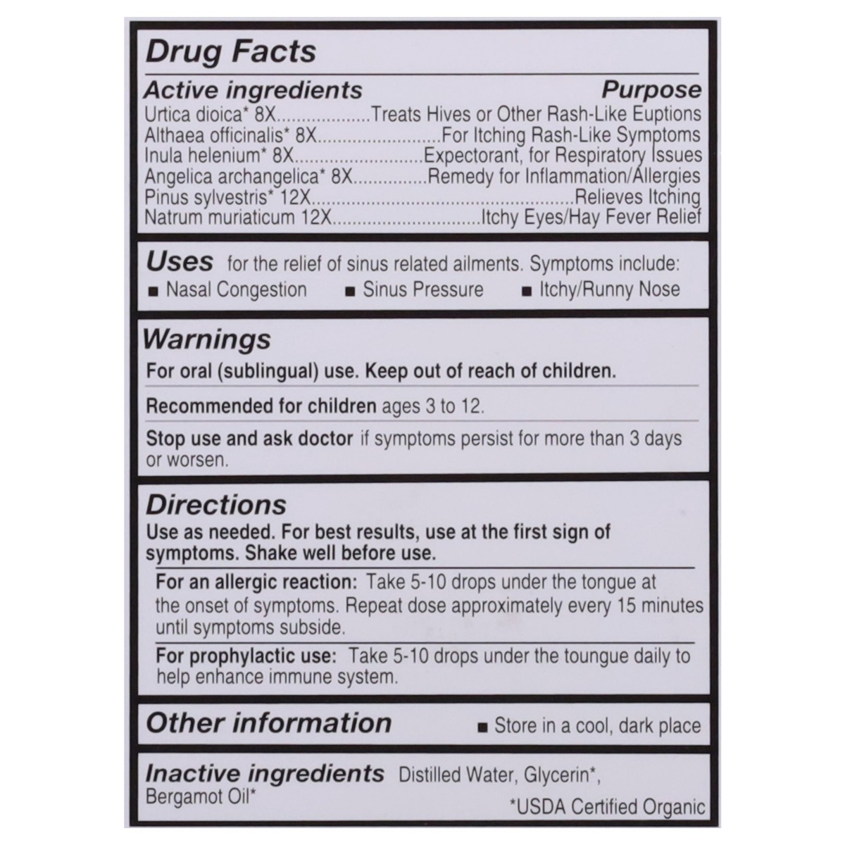 Active Ingredients: Urtica Dioica 8X, Treats Hives or Other Rash-Like Euptions; Althaea Officinalis 8X, For Itching Rash-Like Symptoms; Inula Helenium 8X , Expectorant, for Respiratory Issues; Angelic…