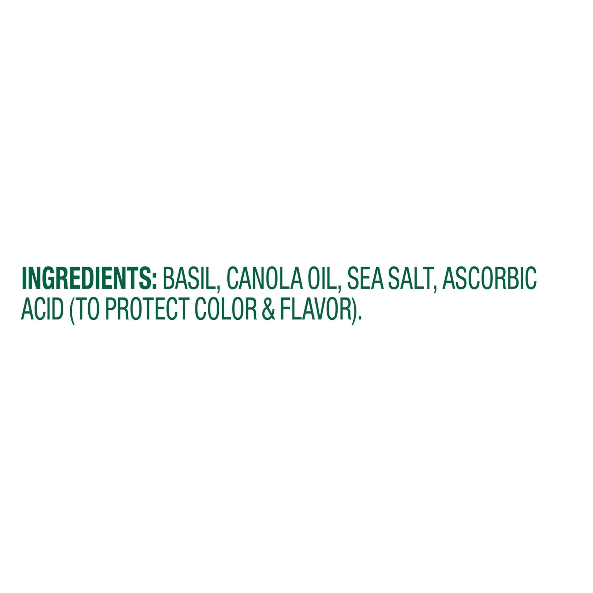 Basil, Canola Oil, Sea Salt, Ascorbic Acid to Protect Color.