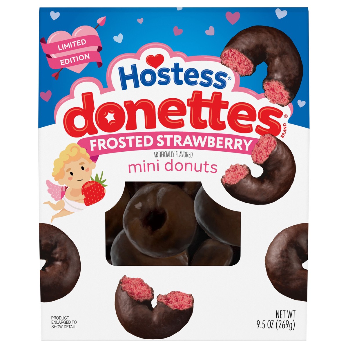 Love is in the air this Valentine’s season. For a limited time, fall in love with HOSTESS Frosted Strawberry, with Natural and Artificial flavors, DONETTES donuts. These chocolate frosted Valentine’s …