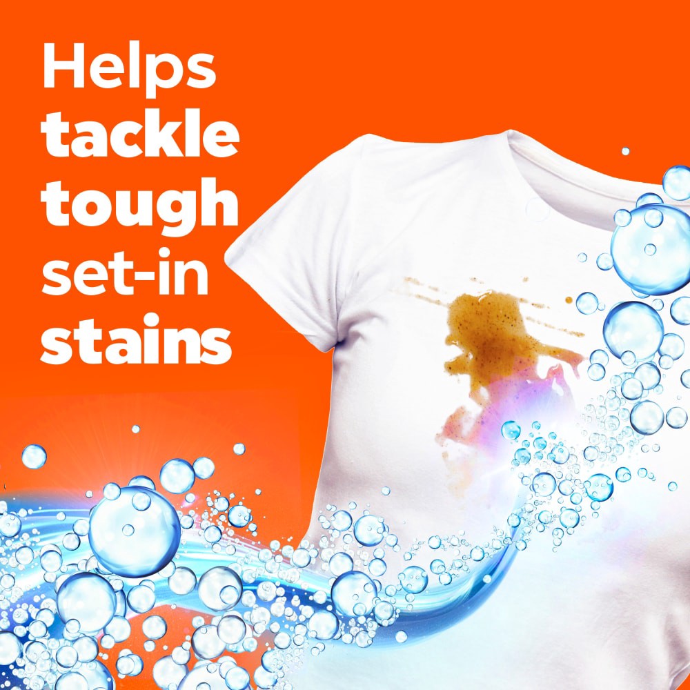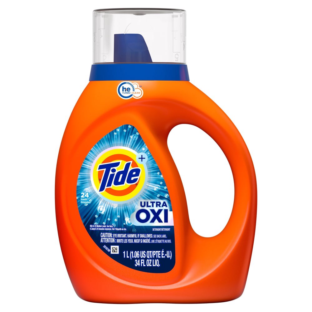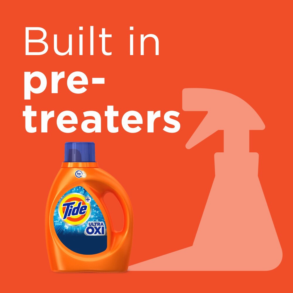 Tide Ultra OXI liquid laundry detergent has built-in pre-treaters to remove even the toughest stains. It is now more concentrated to provide more stain removal and freshness and less water*. From Amer…