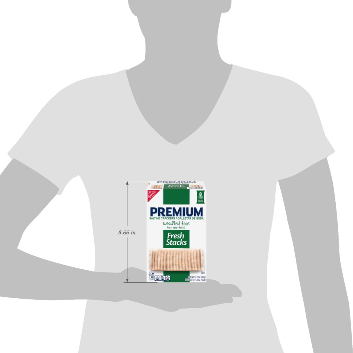 Premium Fresh Stacks Unsalted Tops Saltine Crackers are tasty Premium saltines, only without the salt on top. These soda crackers deliver classic mild flavor and crispy texture, making them a deliciou…