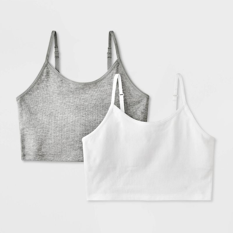 Girls' 2pk Cotton Shelf Bra Cami - Cat & Jack™ White/Gray M