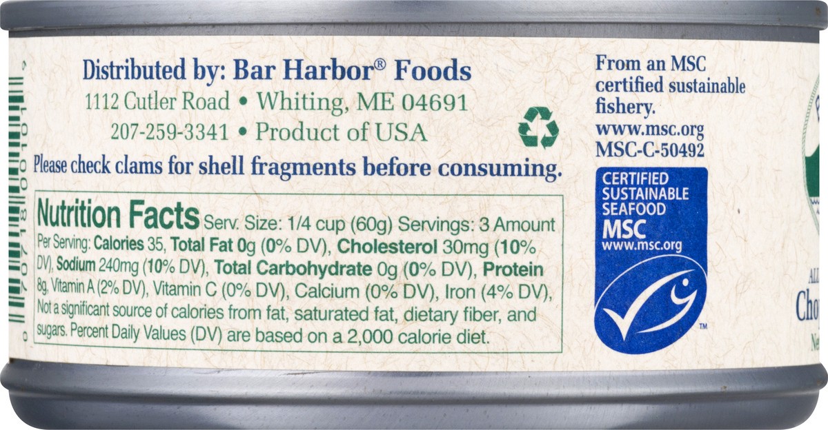 All Natural Ingredients: Water, Chopped Sea Clams, Sea Salt.